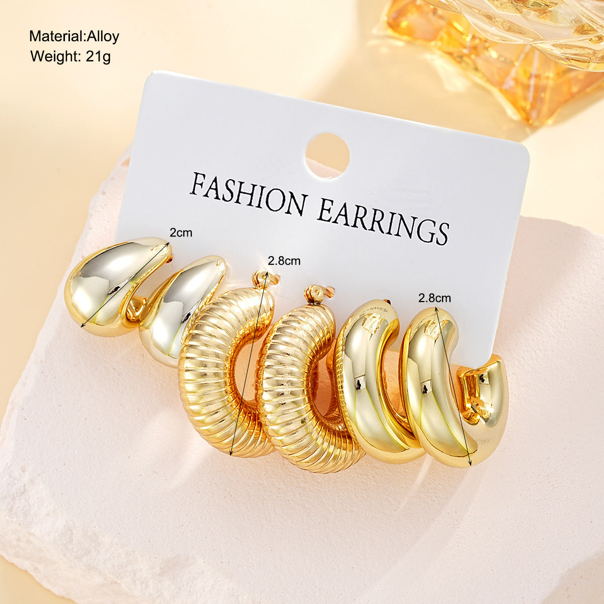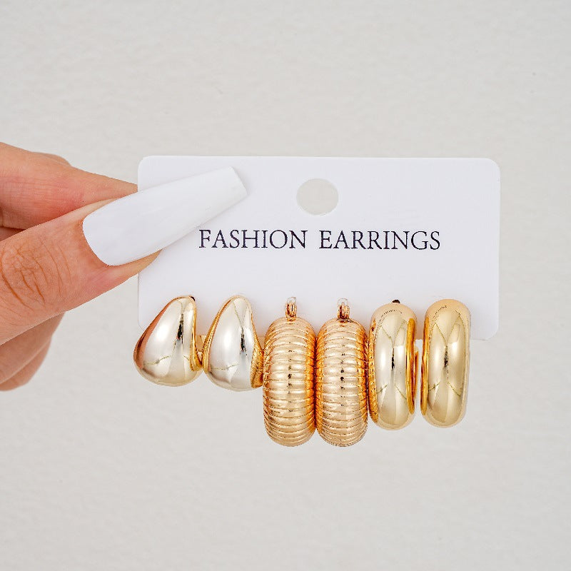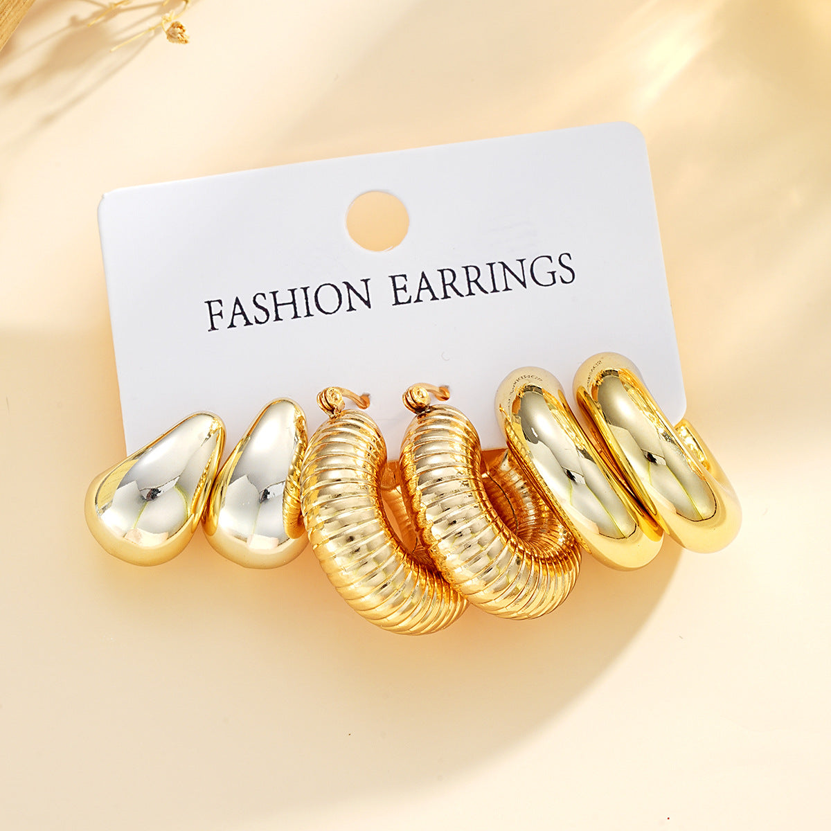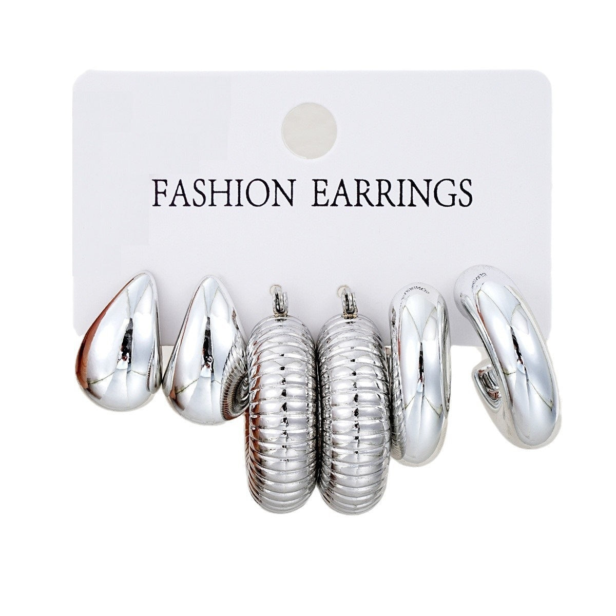 Water Drop Round Suit Three Pairs Fashionable Light Earrings
