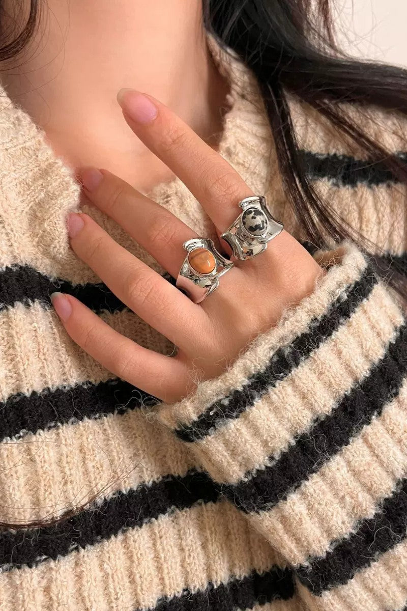 Color: Yellow Stone Ring, Leopard Stone Ring