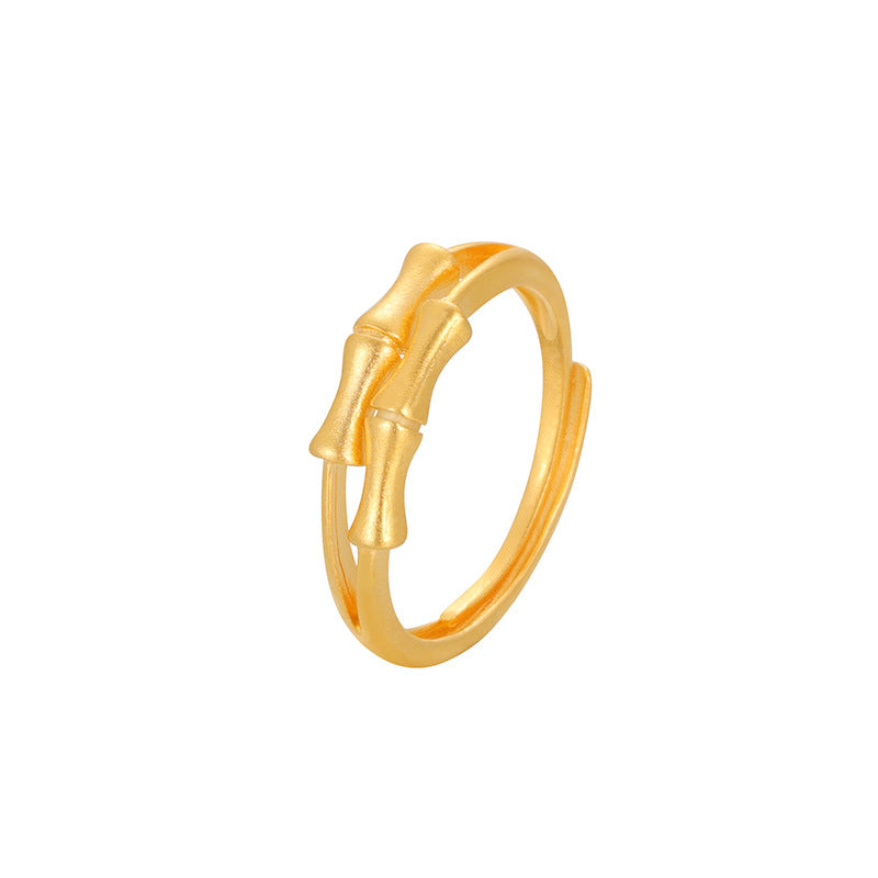 Women's Alluvial Gold Bow Bamboo Opening Adjustable Rings