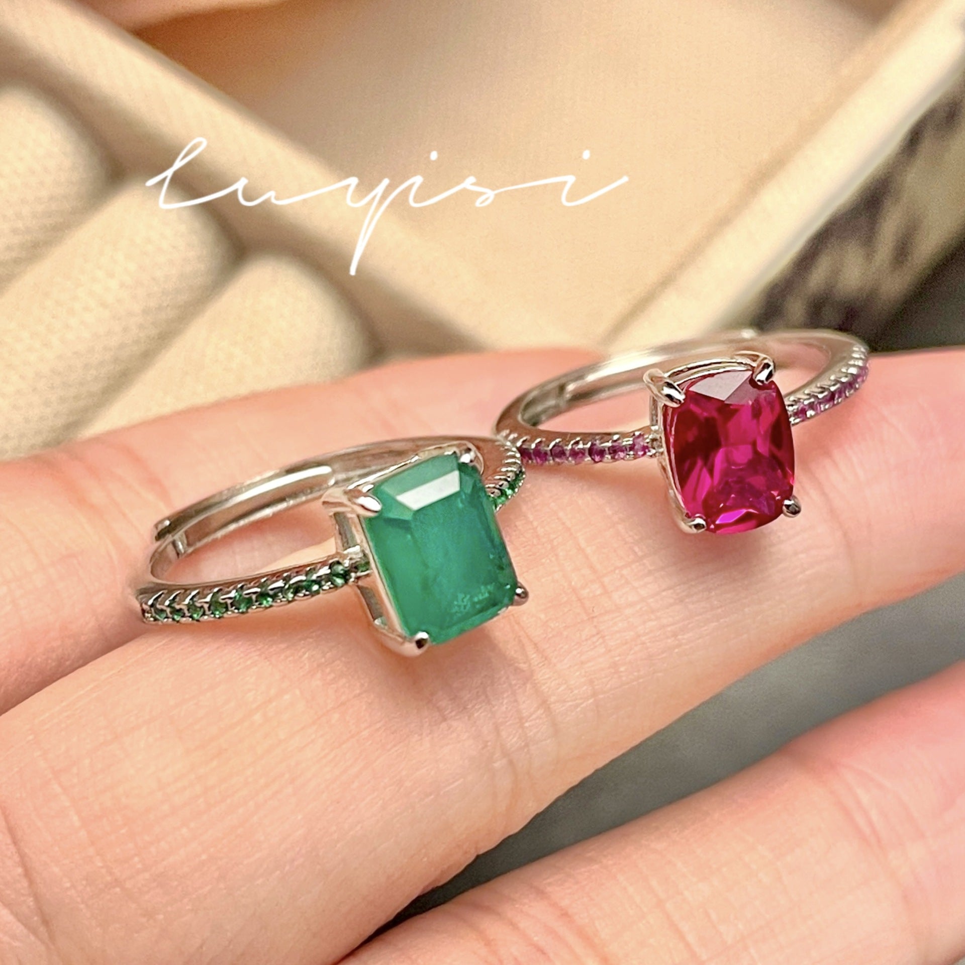 Women's Artificial Emerald Inlaid High Carbon Diamond Rings