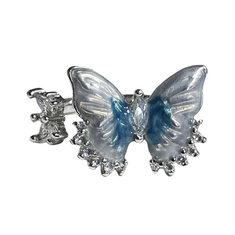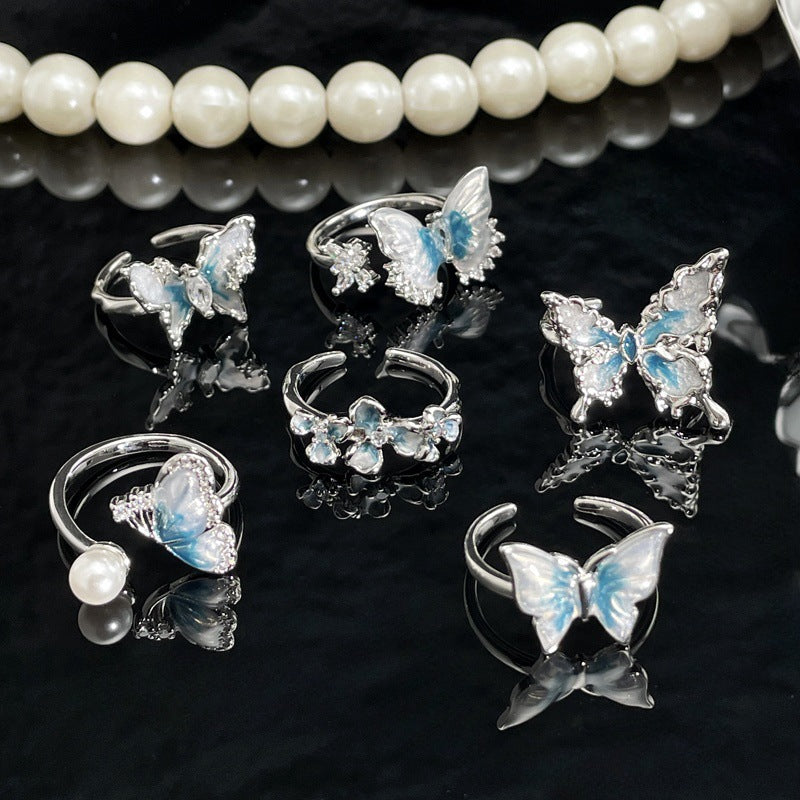 Women's Blue Butterfly Opening Cold Style Sweet Cool Rings