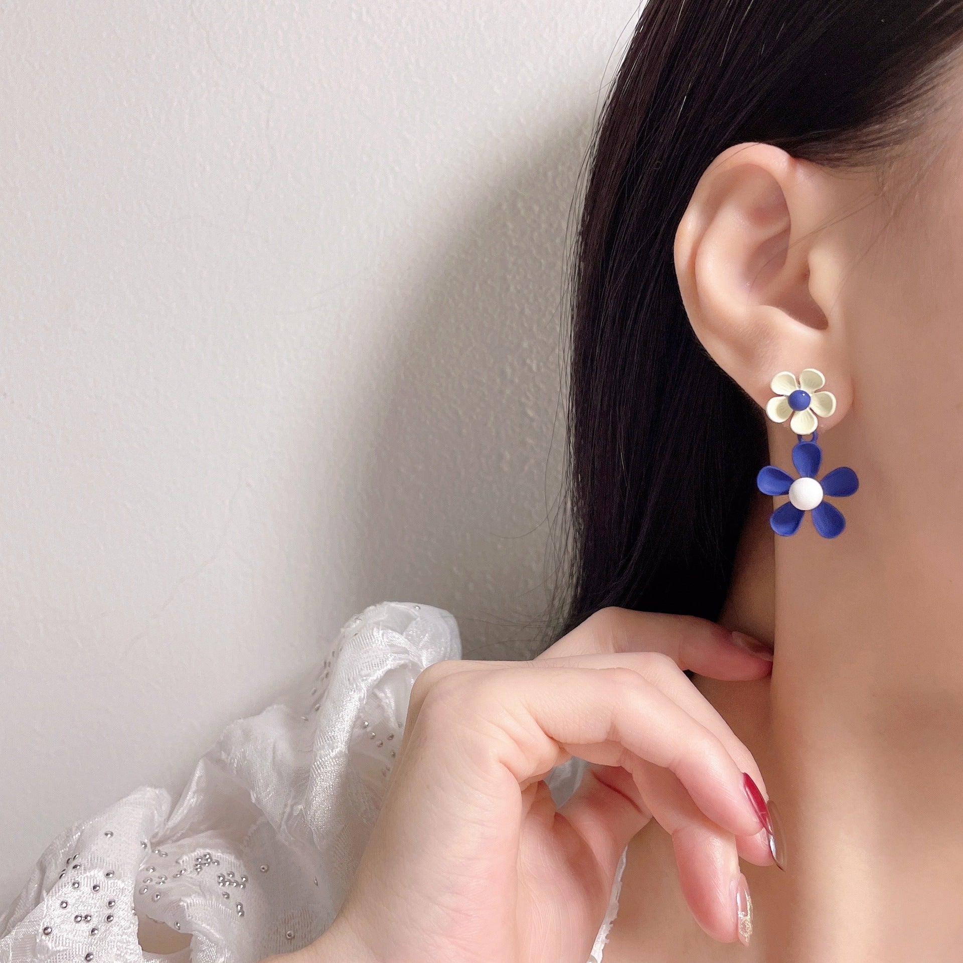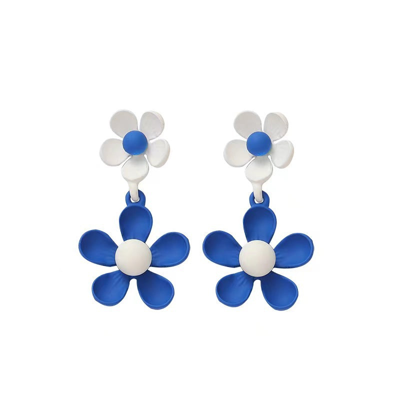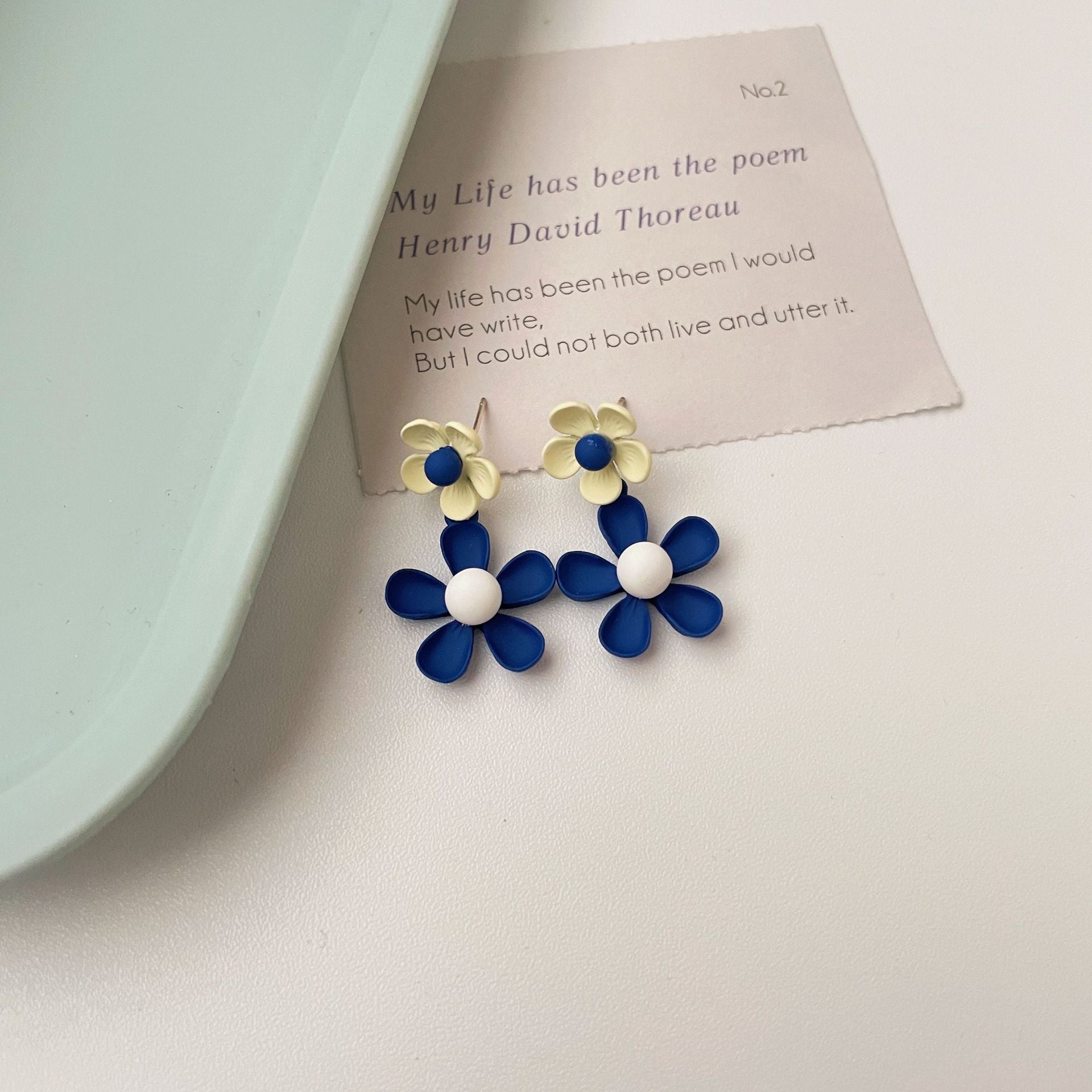 Women's Blue Contrast Color Flower Style Niche Design Trendy Earrings