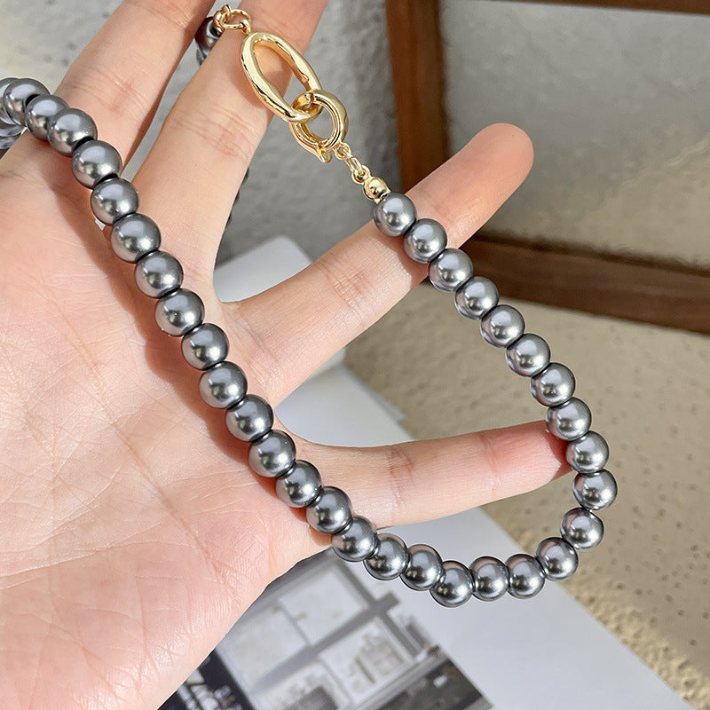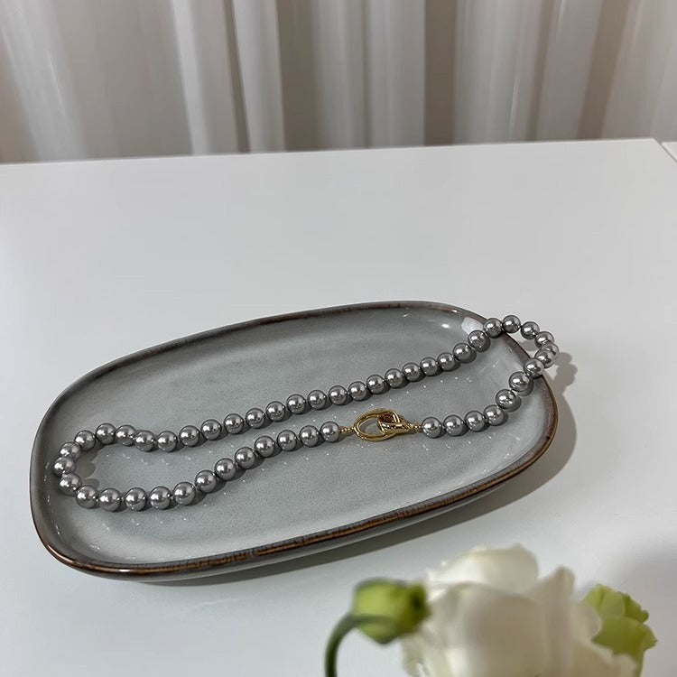 Women's Brass Buckle Sier Gray Round Pearl Necklaces