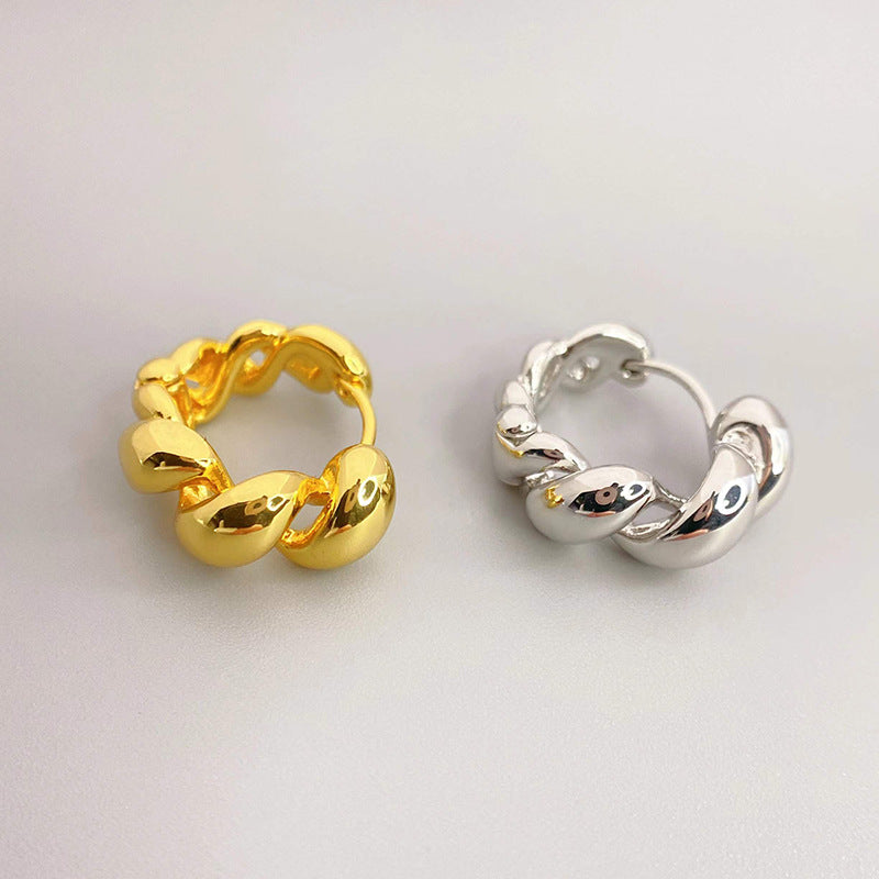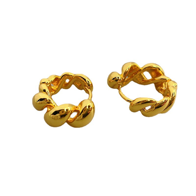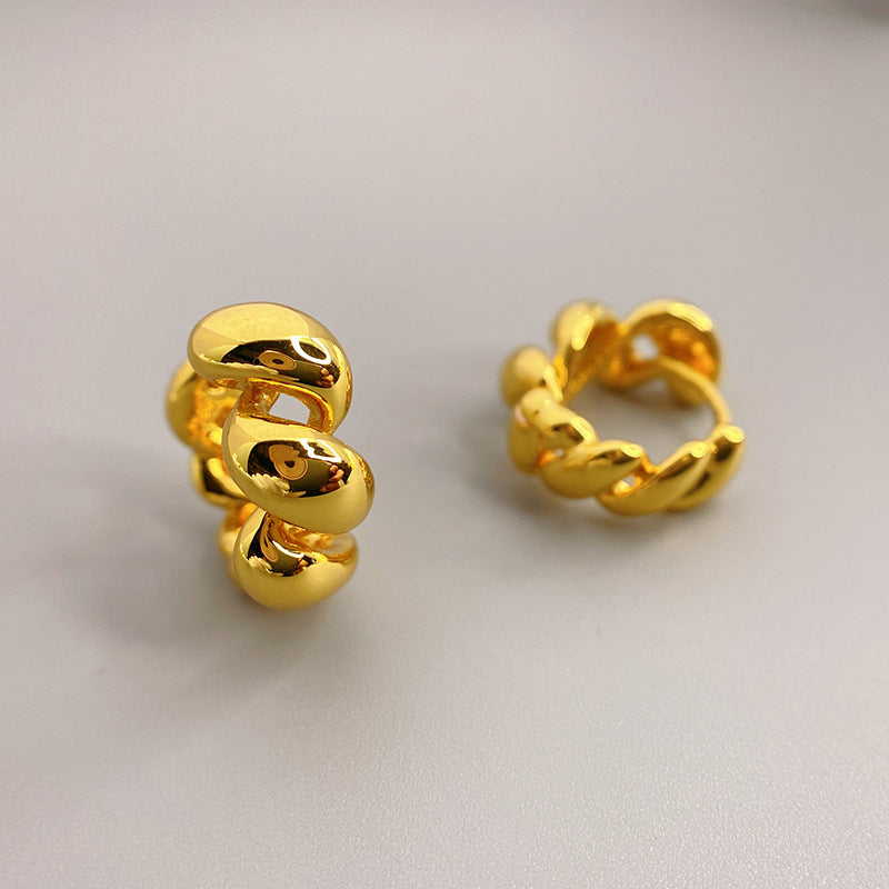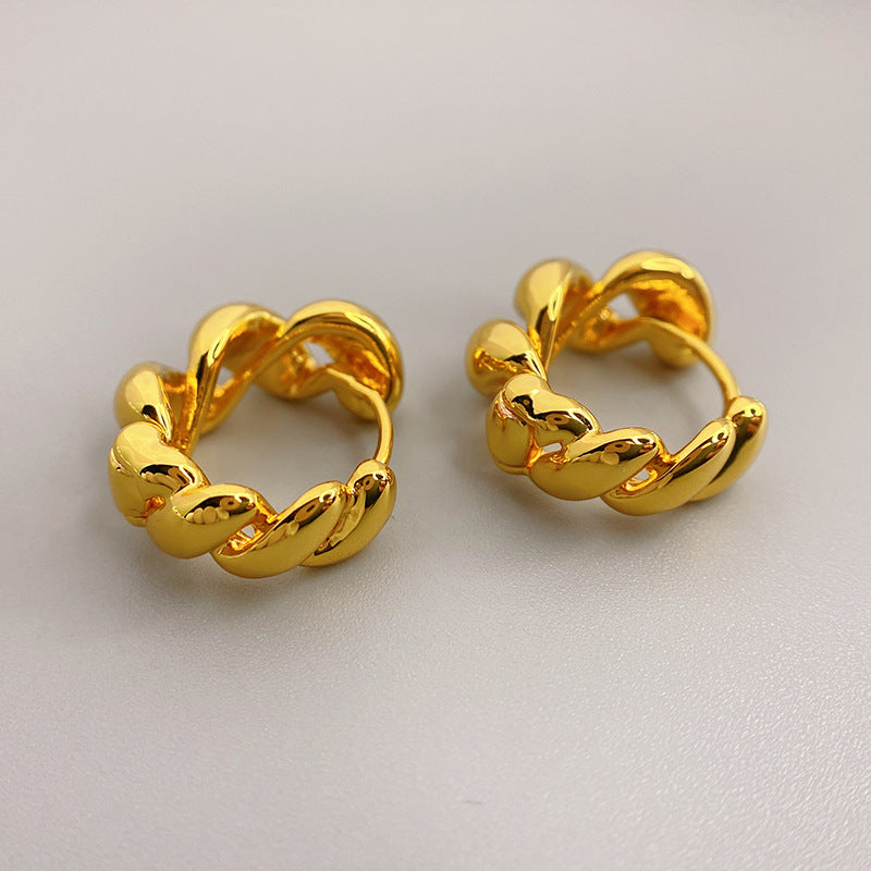 Women's Brass Gold-plated Double-line Woven Hollowed Gold Fashion Small Ear Earrings