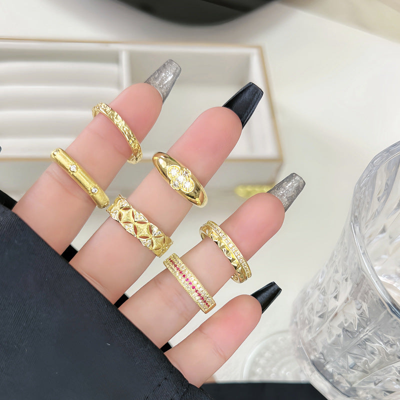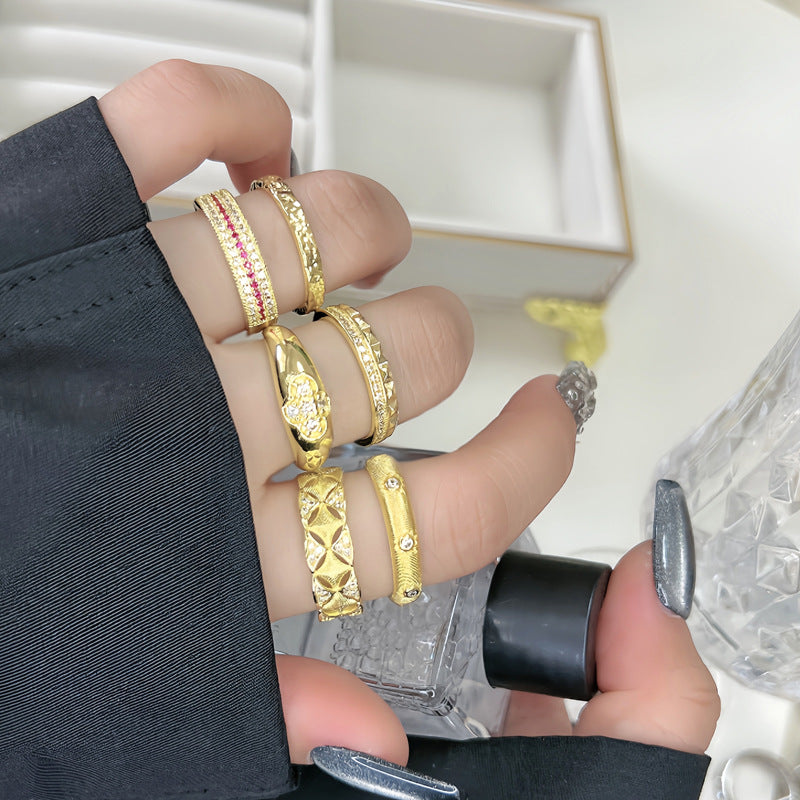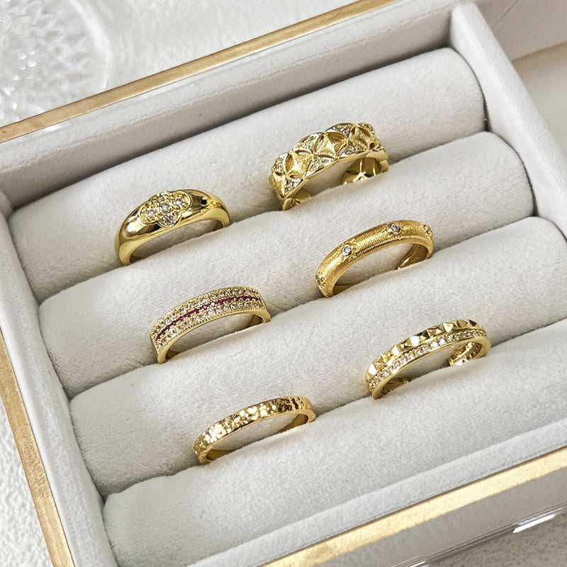 Women's Brushed Fashion Rhombus Adjustable Pleated Texture Rings