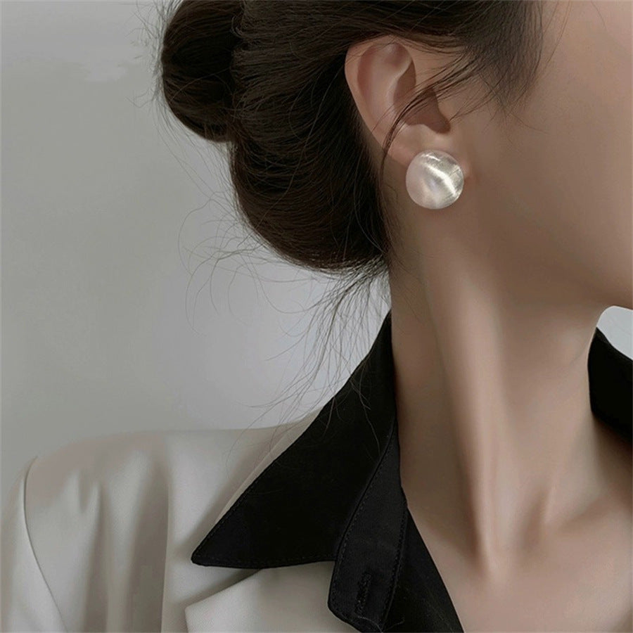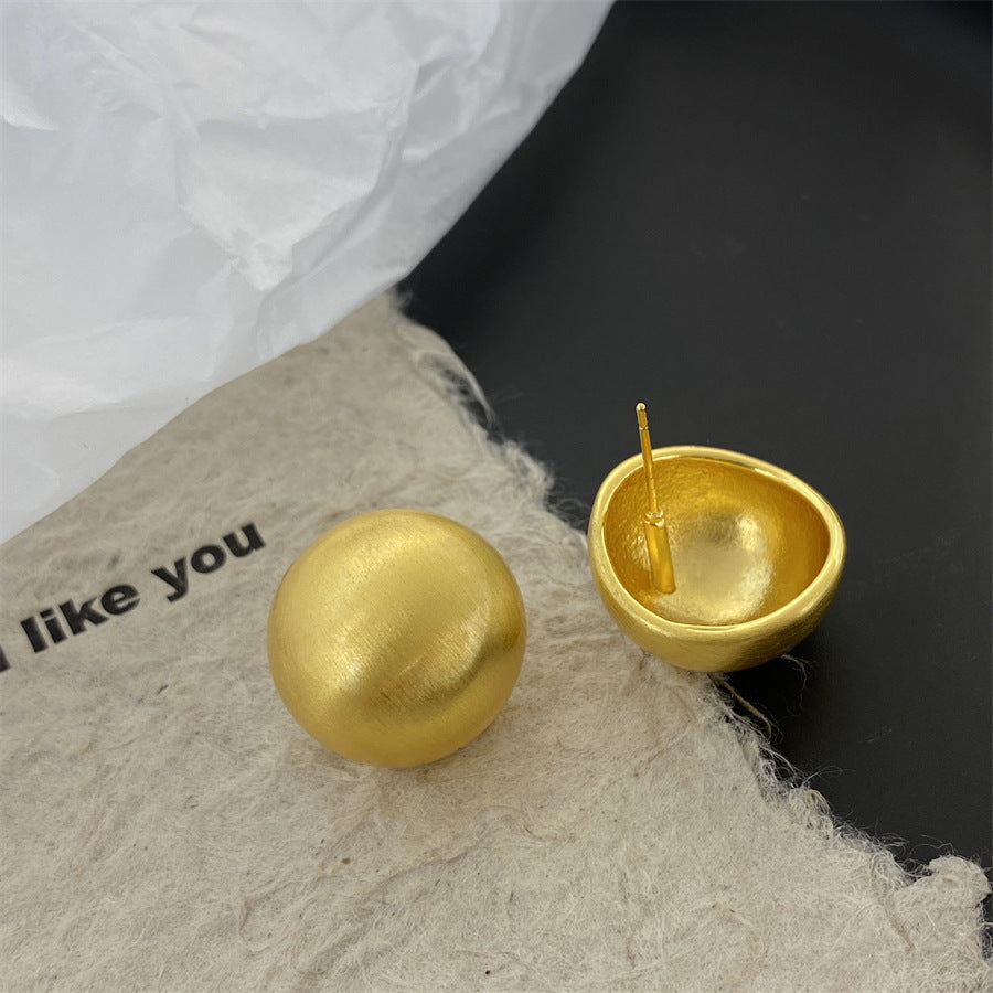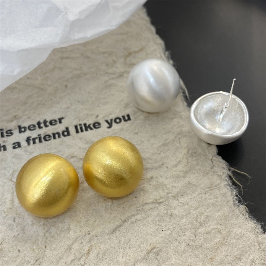 Women's Brushed Steamed Bread Round Metal Light Earrings