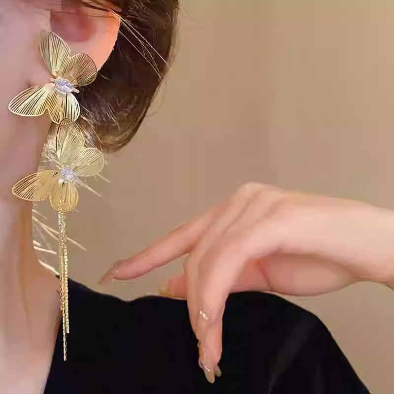 Women's Butterfly Tassel High-grade Light Luxury Long Earrings