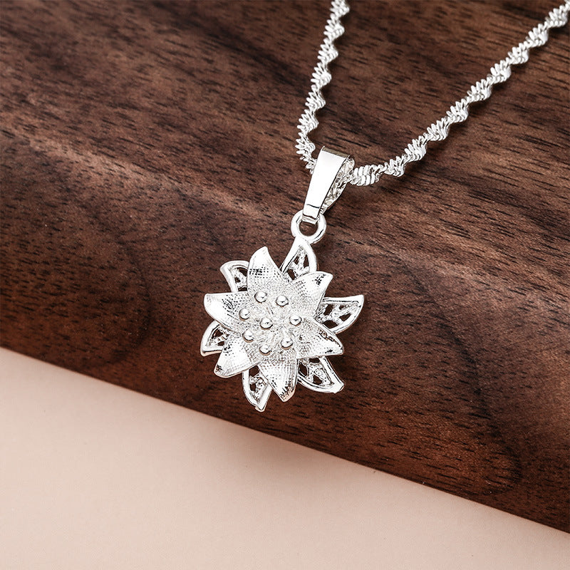 Women's Casual Water Ripple Sier-plated Love Necklaces