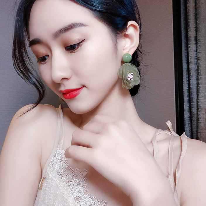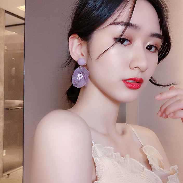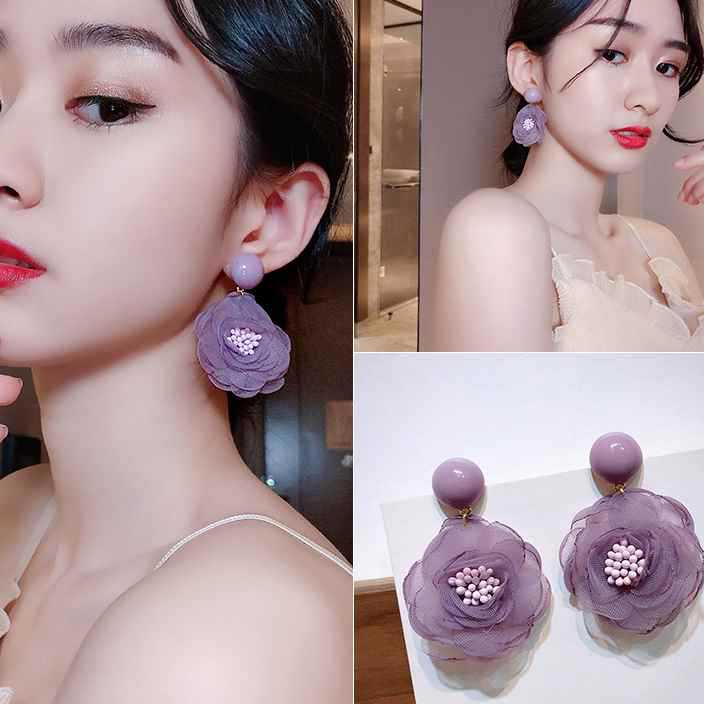 Women's Chiffon Lace Flower Purple Petal Eardrops Rings