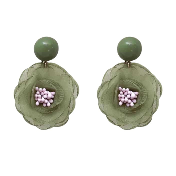 Color: Purple Flower-Stud Earrings, Green Flower Stud Earrings