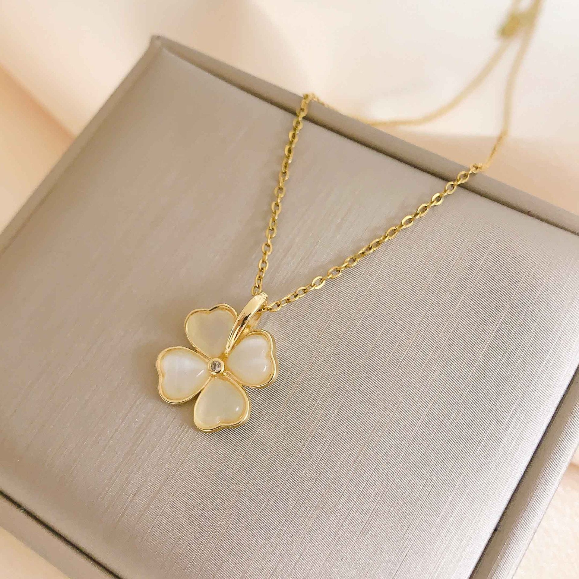 Women's Clover Cat Eye Titanium Steel Simple Necklaces