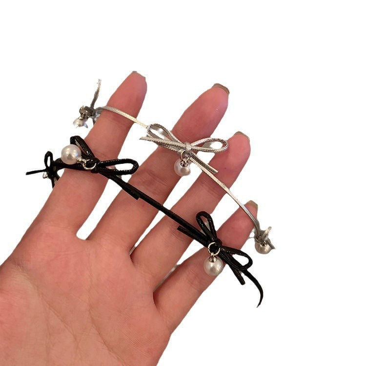 Women's Cool Bow Pearl High-grade Sier Leather Necklaces