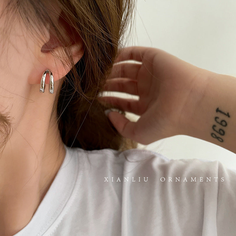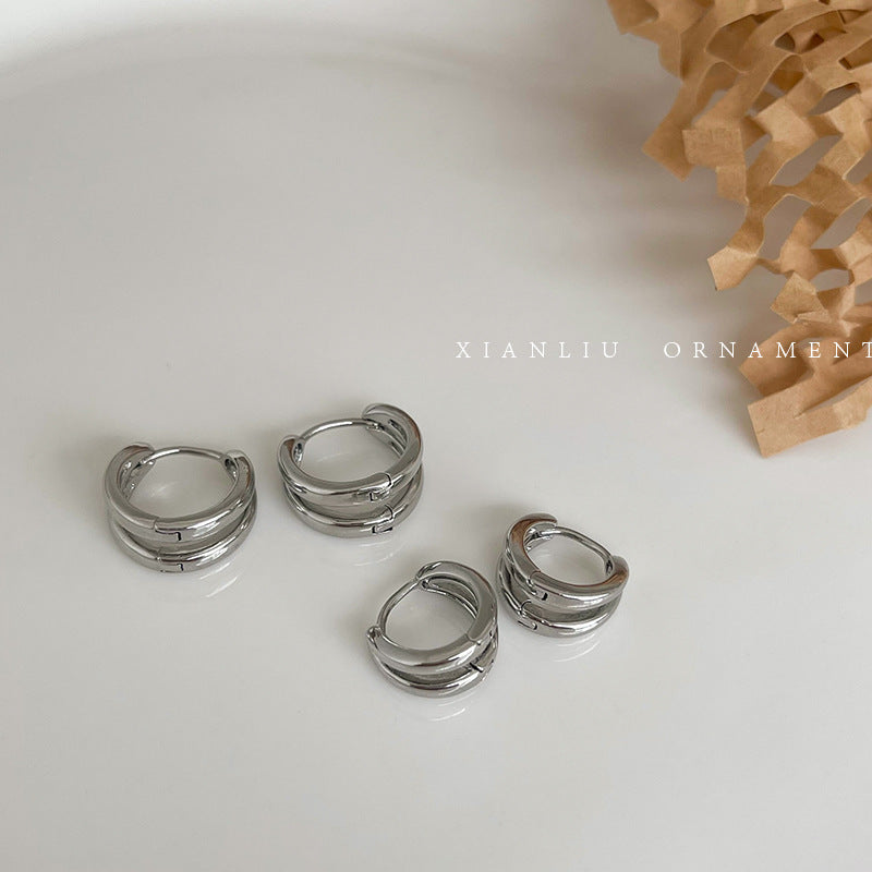 Women's Cool Style Double Layer Round Niche Design Earrings