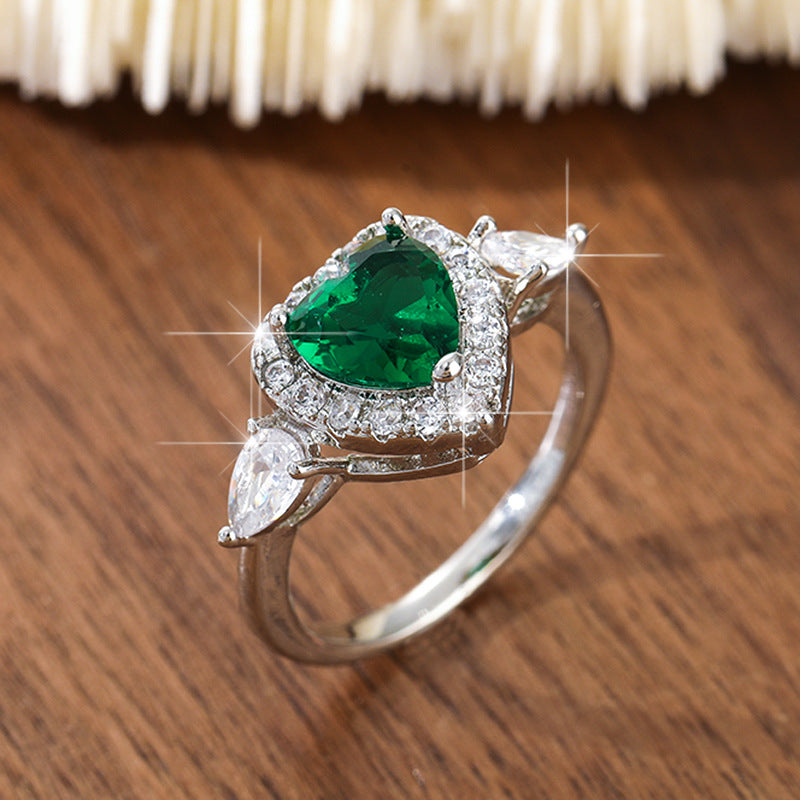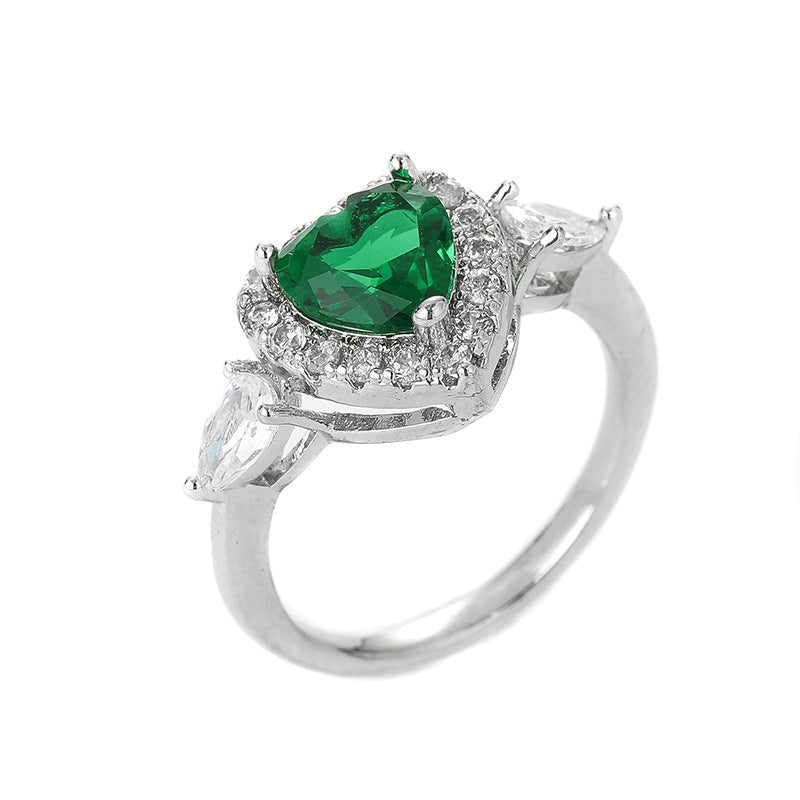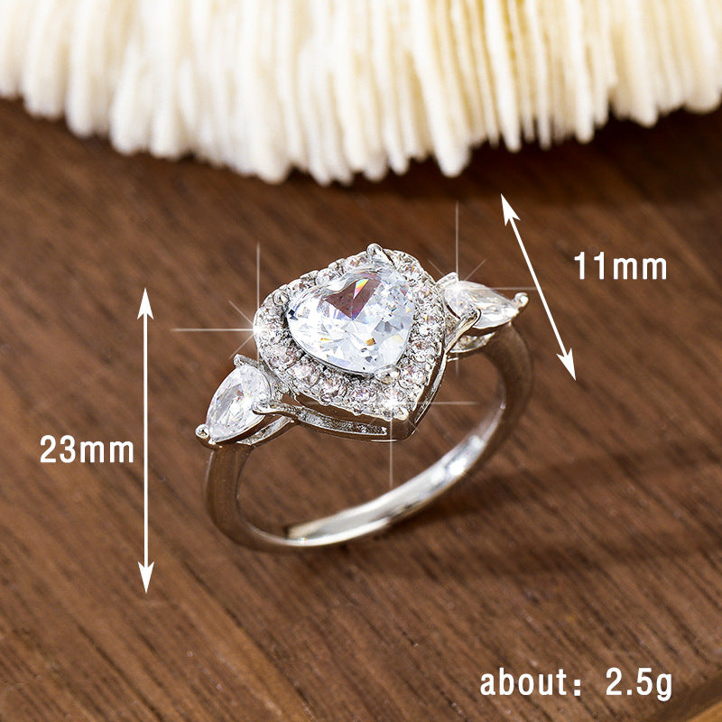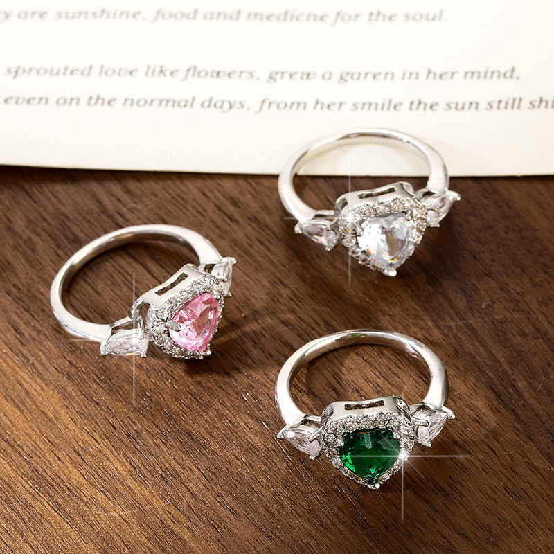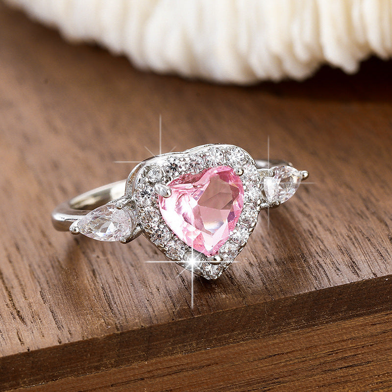 Women's Copper Inlaid Zircon Sweet Pink Love Heart-shaped Rings