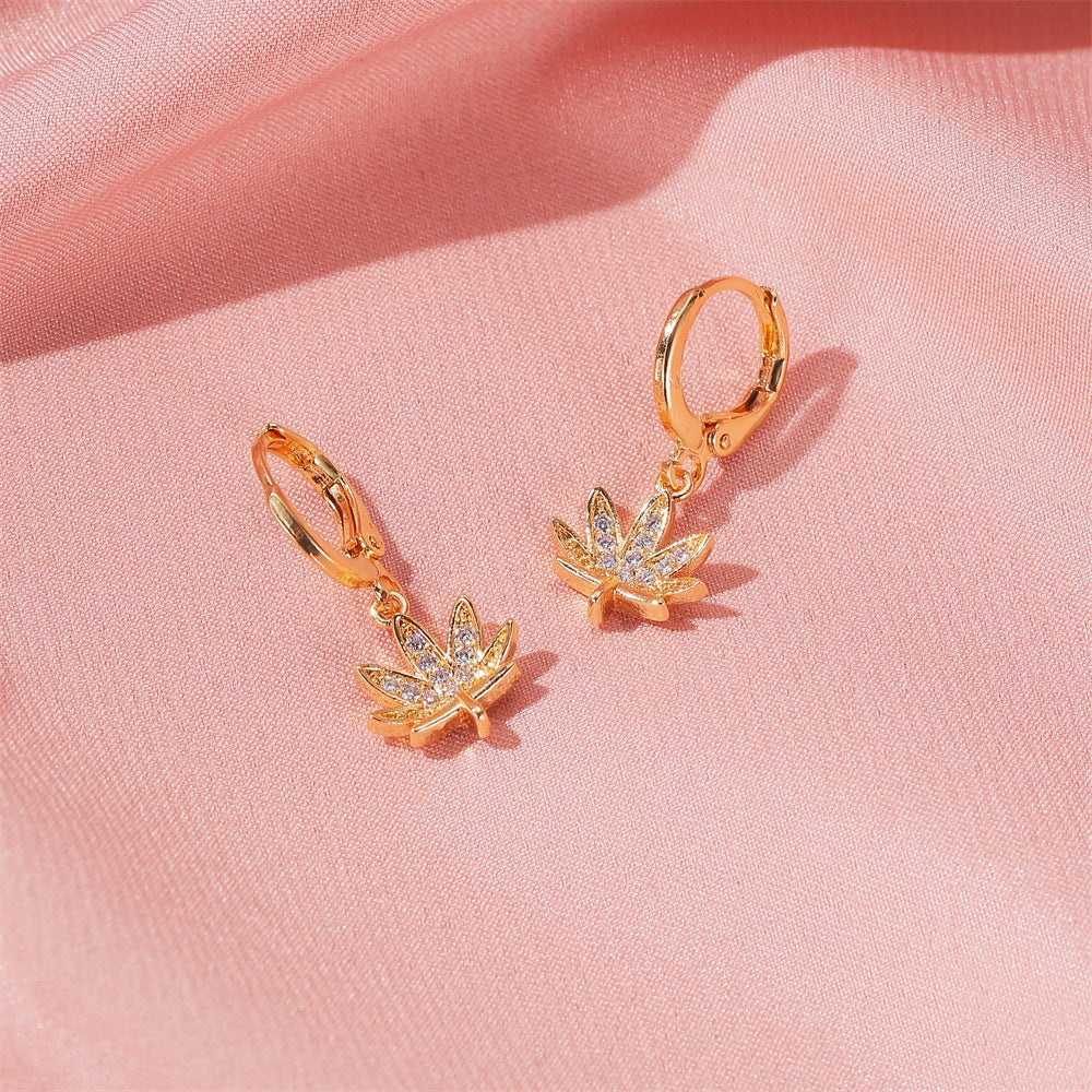Women's Diamond Maple Leaf For Graceful Personality Design Earrings