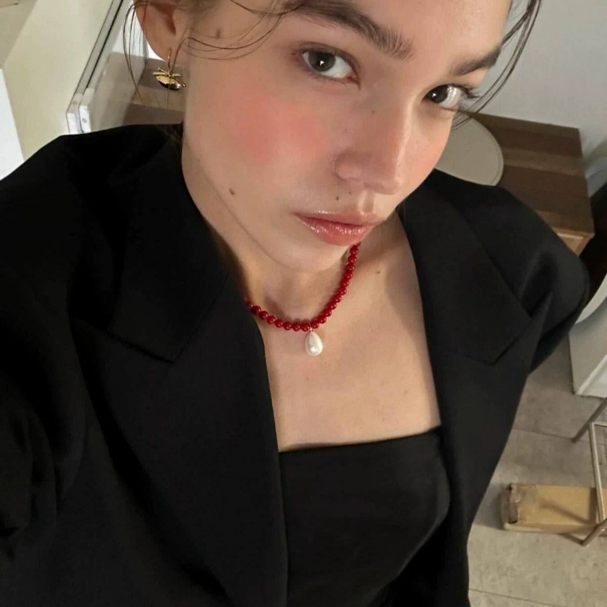 Color: Red Beaded Necklace, Black Beaded Necklace