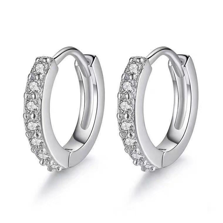 Women's Ear Sier Plated Rhinestone Simple Circle Clip Earrings