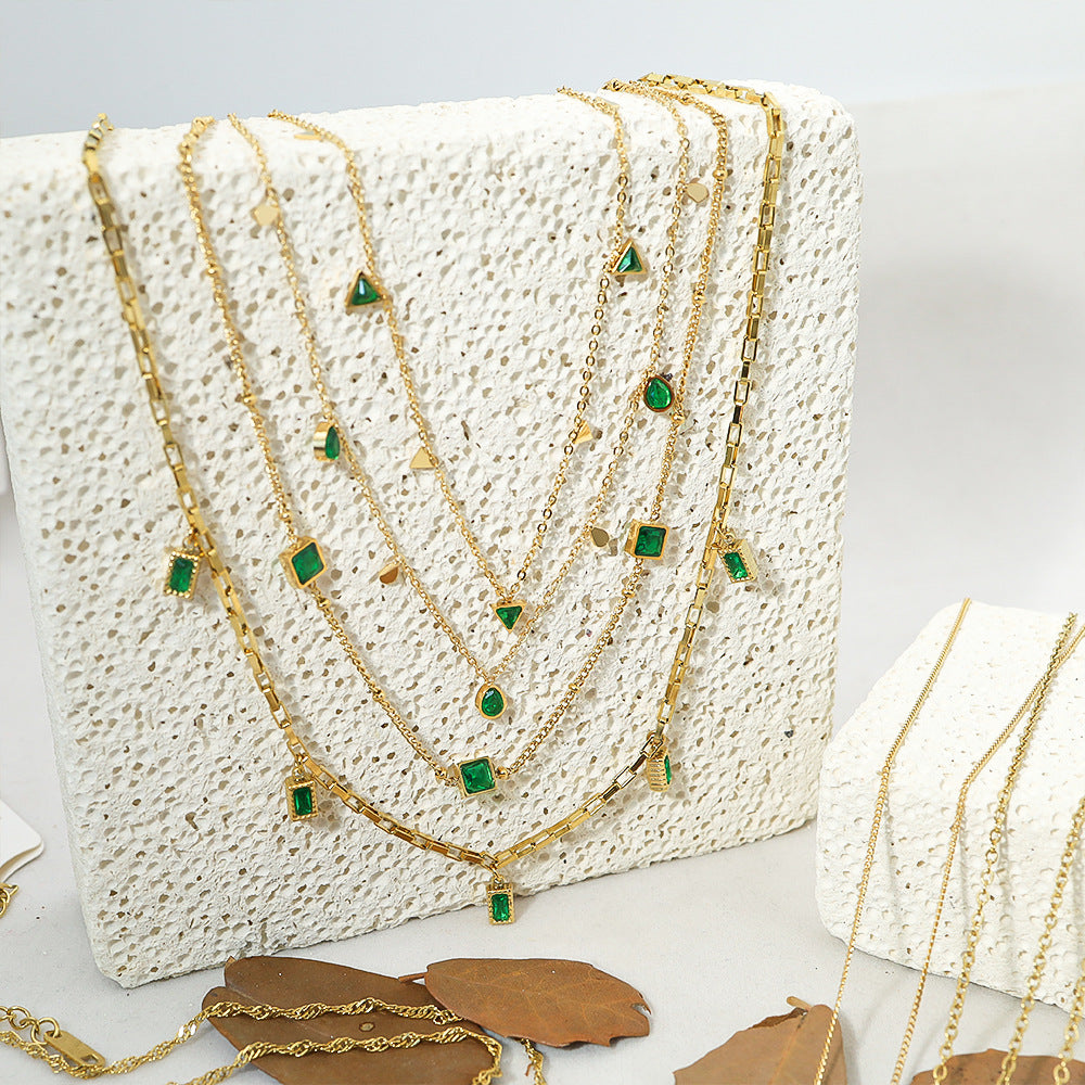 Women's Emerald Zircon Craft Vacuum Electroplating Design Necklaces
