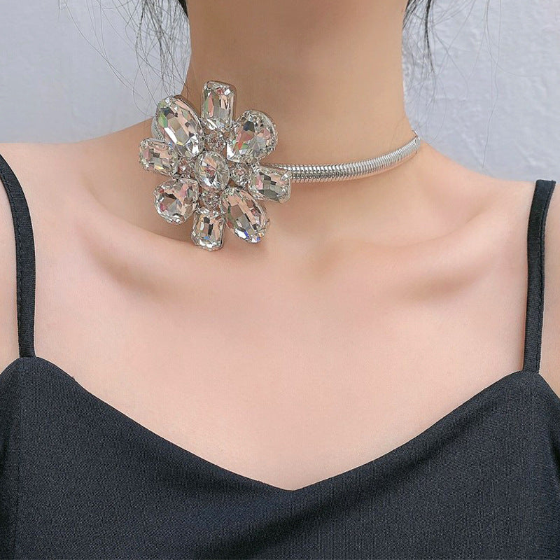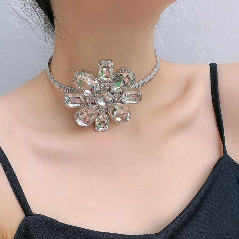 Women's Exaggerated Personalized Oversized Crystal Flowers Light Luxury High-grade Necklaces
