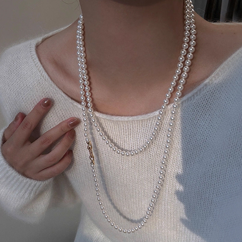Women's Extended Glass Pearl Sweater Chain Long Necklaces