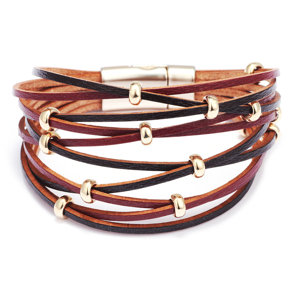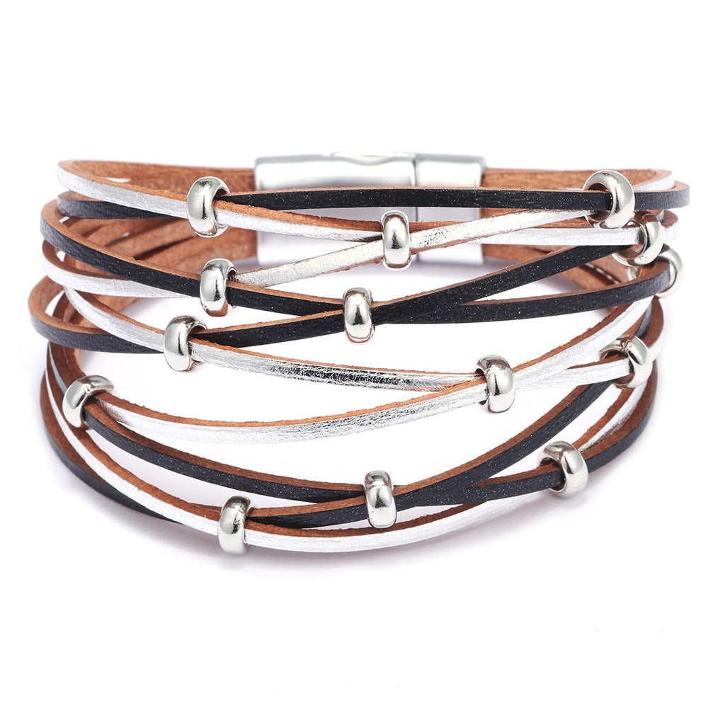 Women's Fashion Gold Sliver Beads Woven Magnetic Snap Bracelets