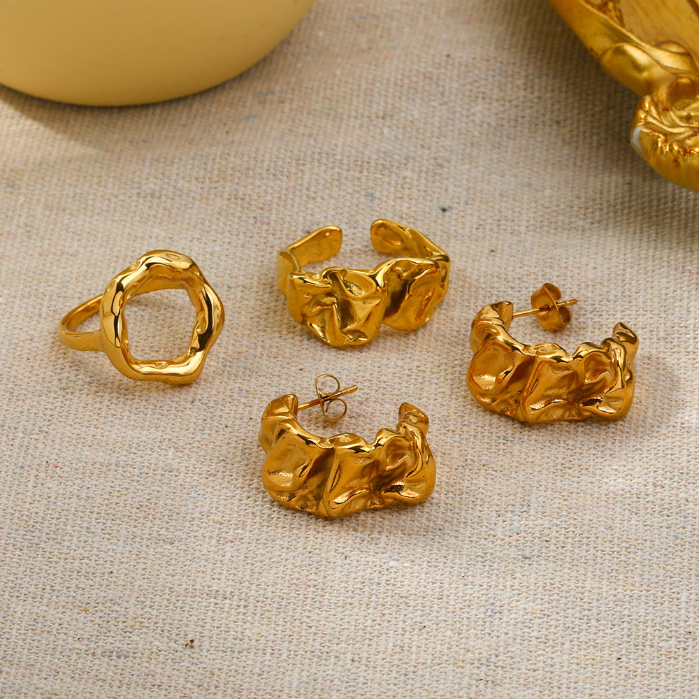 Women's Fashion Gold Stainless Steel Lava Texture Rings