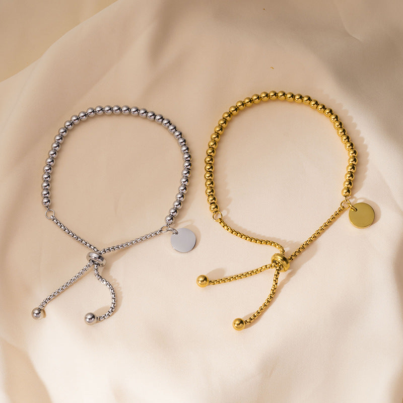 Women's Fashionable Stainless Steel Simple Stylish Round Tag Adjustable Beads Bracelets