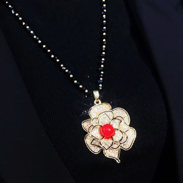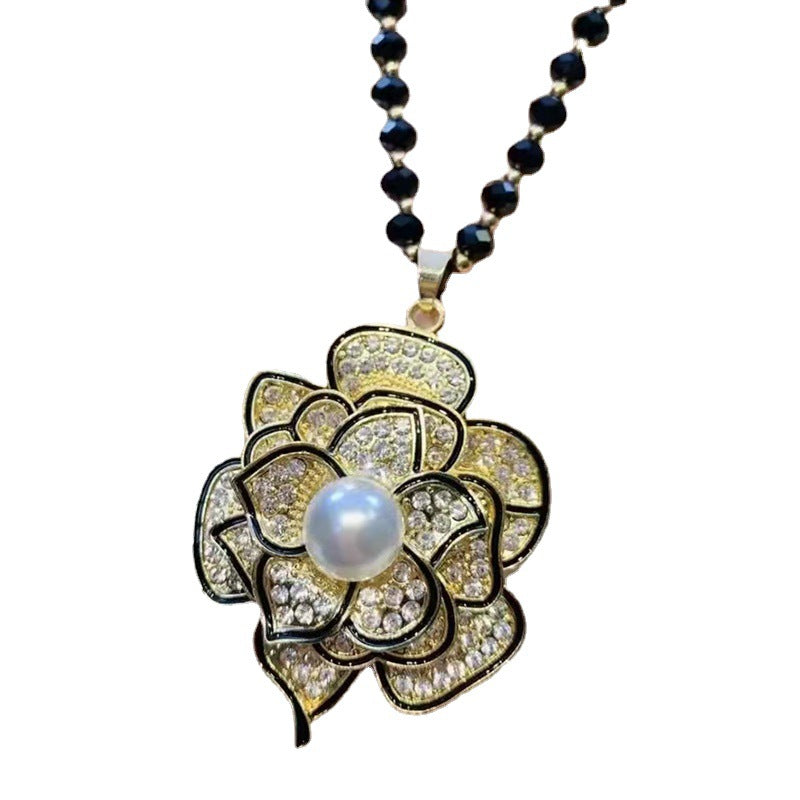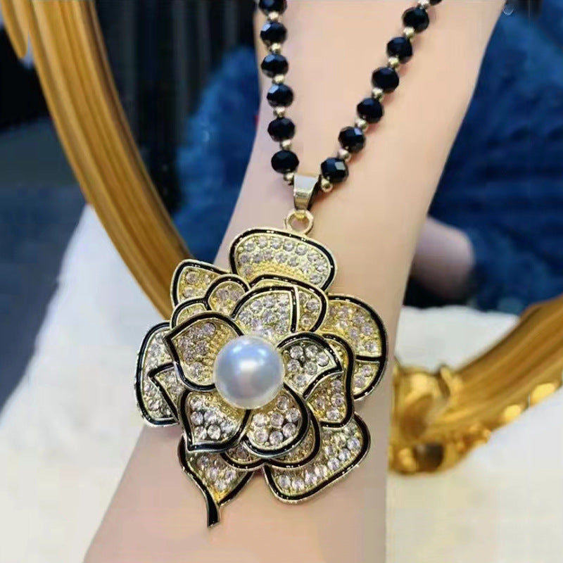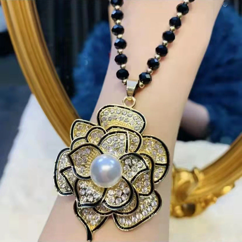 Women's Fashionable Three-dimensional Flower Full Diamond Pearl Necklaces