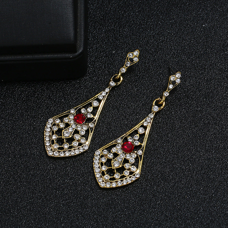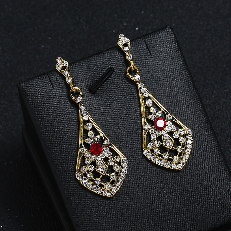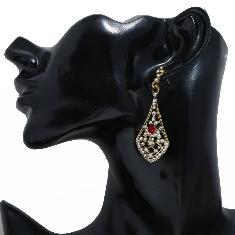 Women's Fashionable Vintage Alloy Diamond Studded Hollow Water Earrings