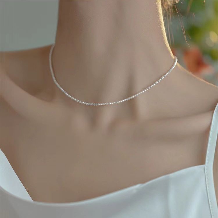 Women's Fine Perfect Circle Mini Small Pearl Necklaces