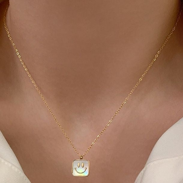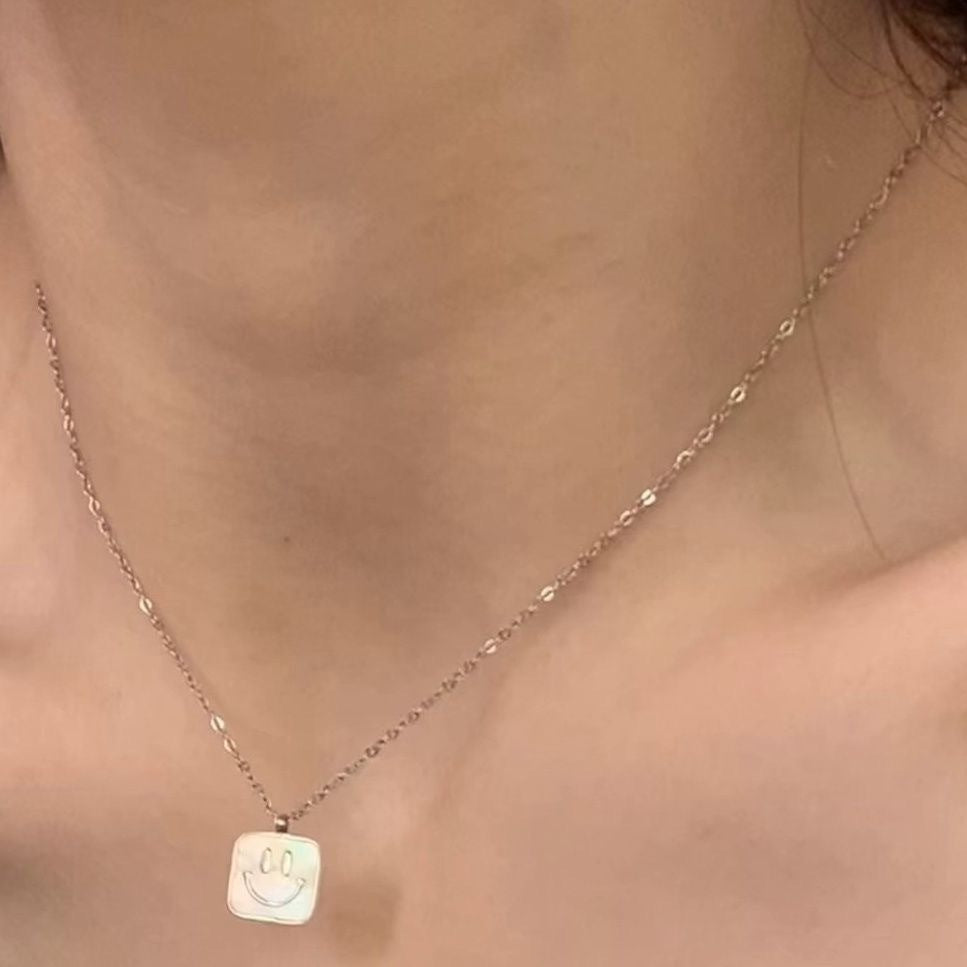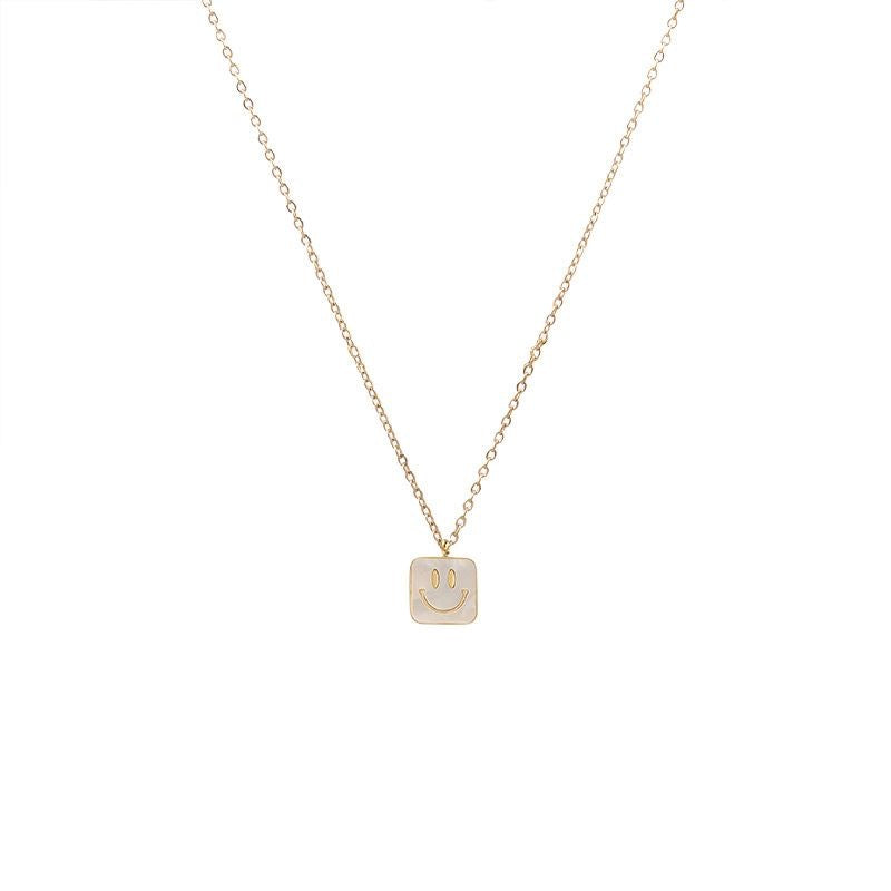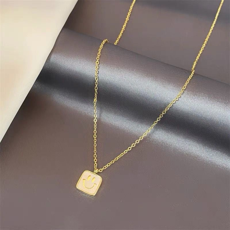 Women's French Style Square Plate Smiley Affordable Necklaces