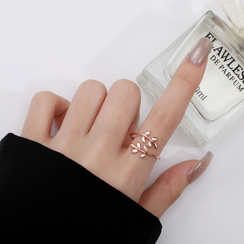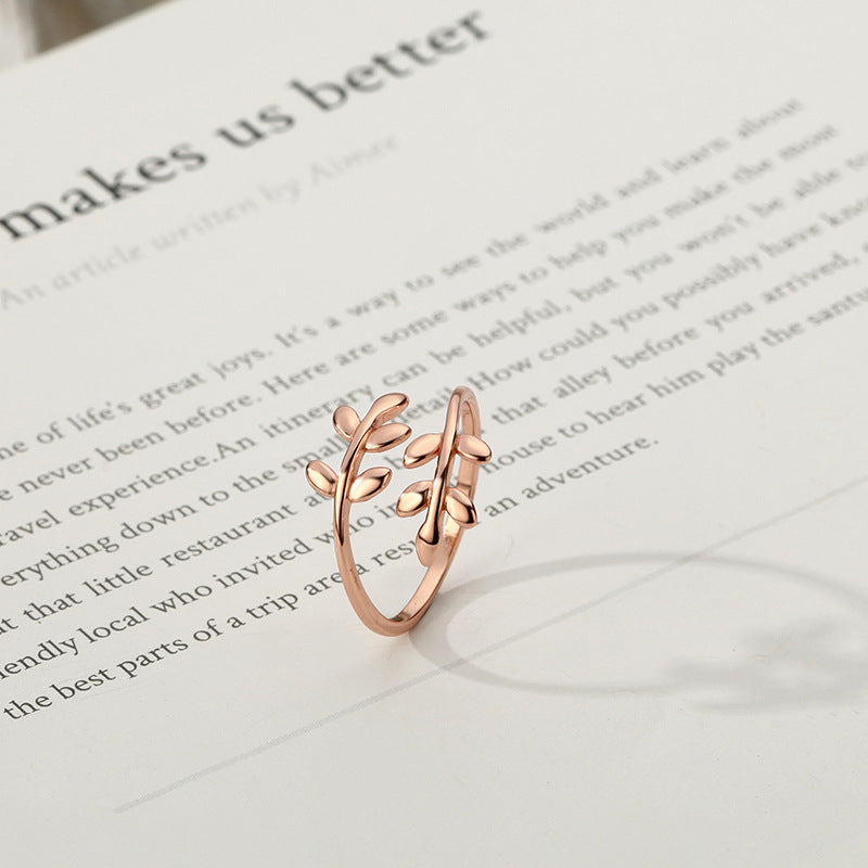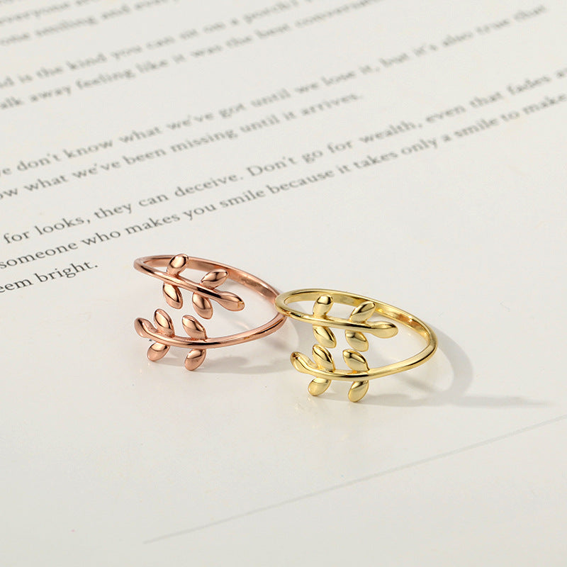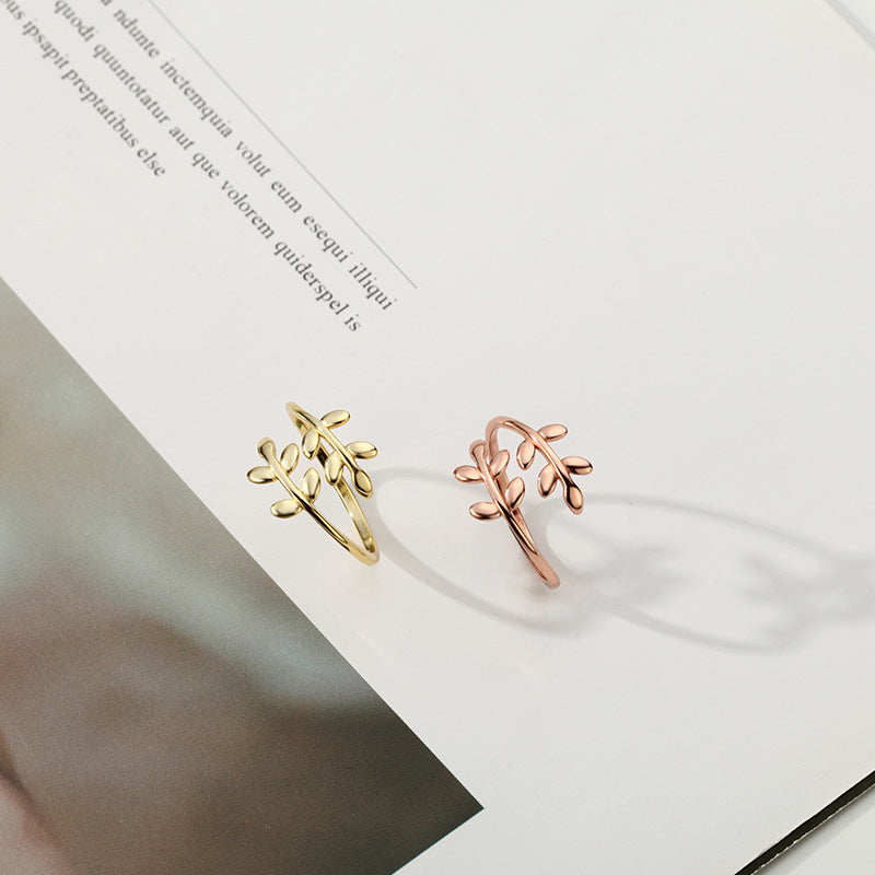 Women's Gold Olive Branch Sterling Sier Leaf Open Rings