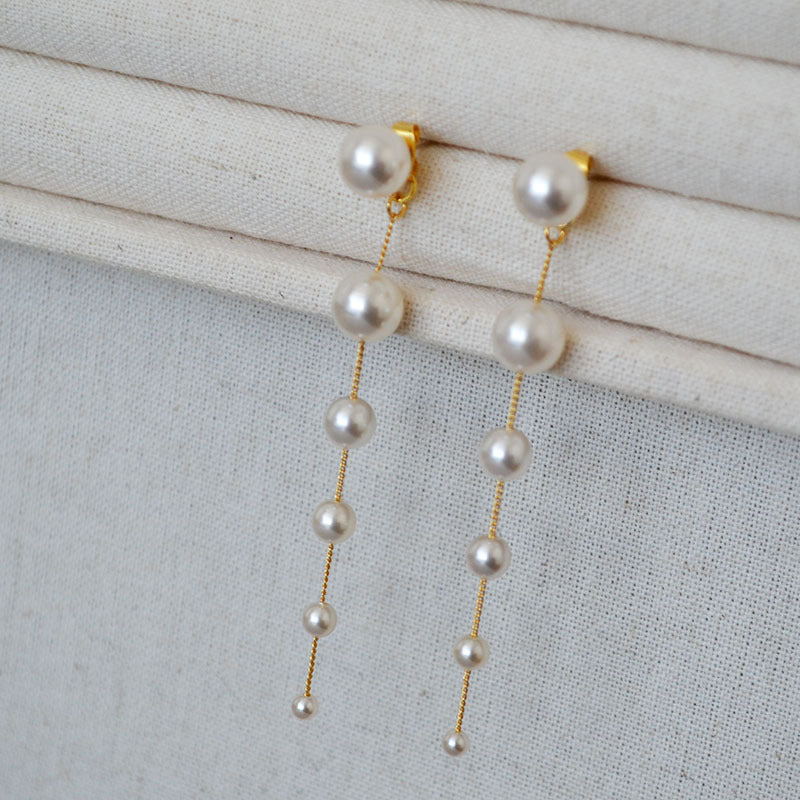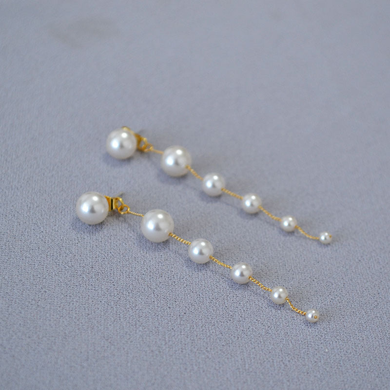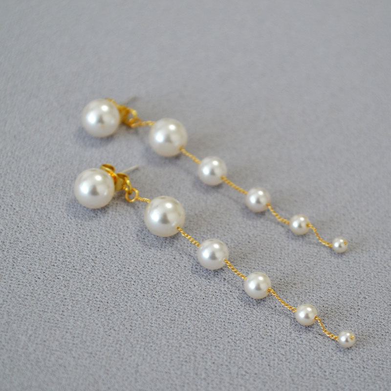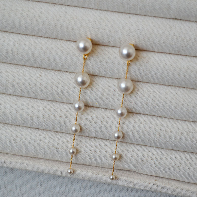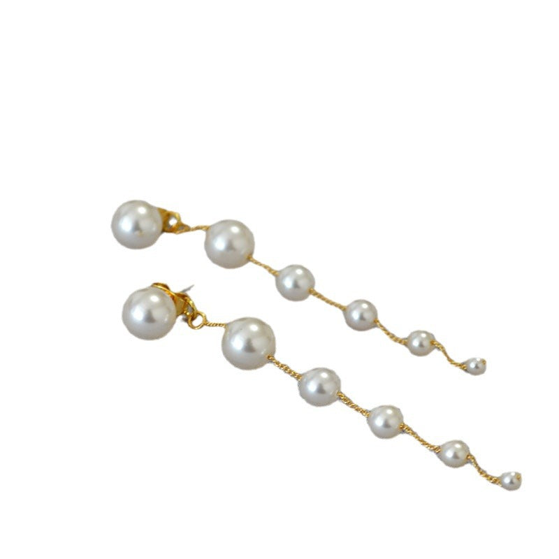 Women's Gradient Large Small Pearls Tassel Sier Earrings