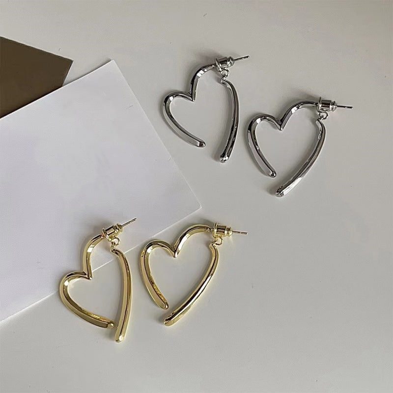 Women's Heart Cross Heart-shaped Sier Pin Design Everyday Joker Earrings