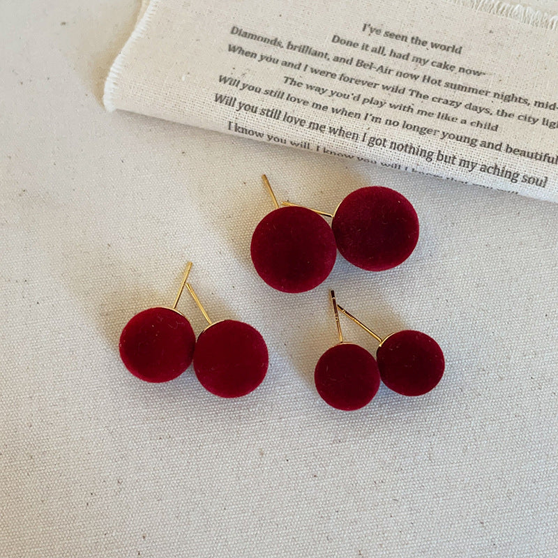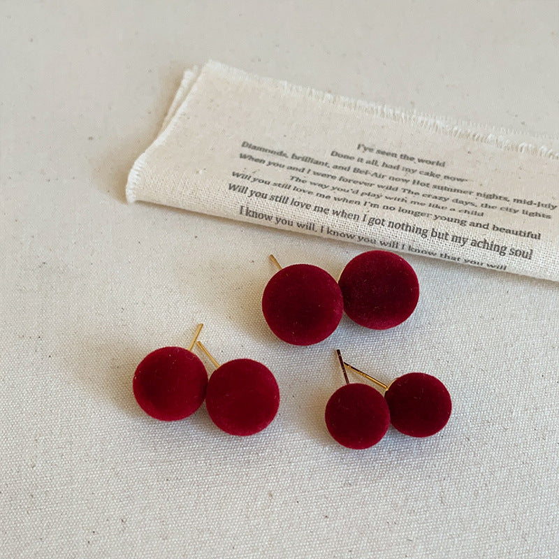 Women's High-grade Burgundy Veet Ball Gentle Unique Earrings