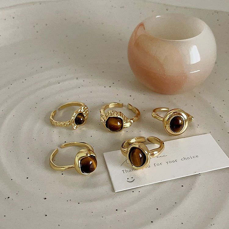 Women's Irregular Metal Tigereye Open For Niche Design Rings