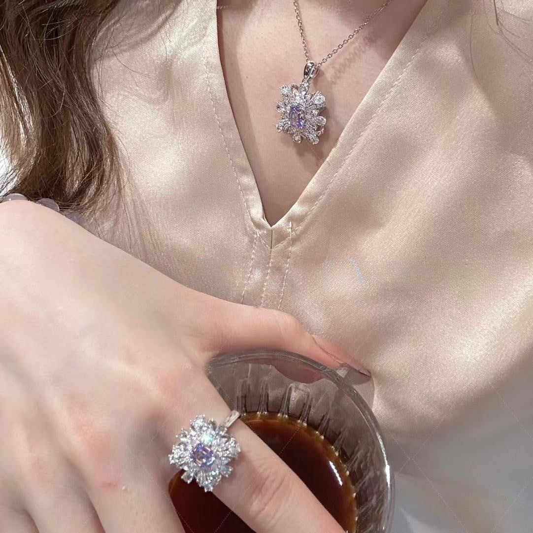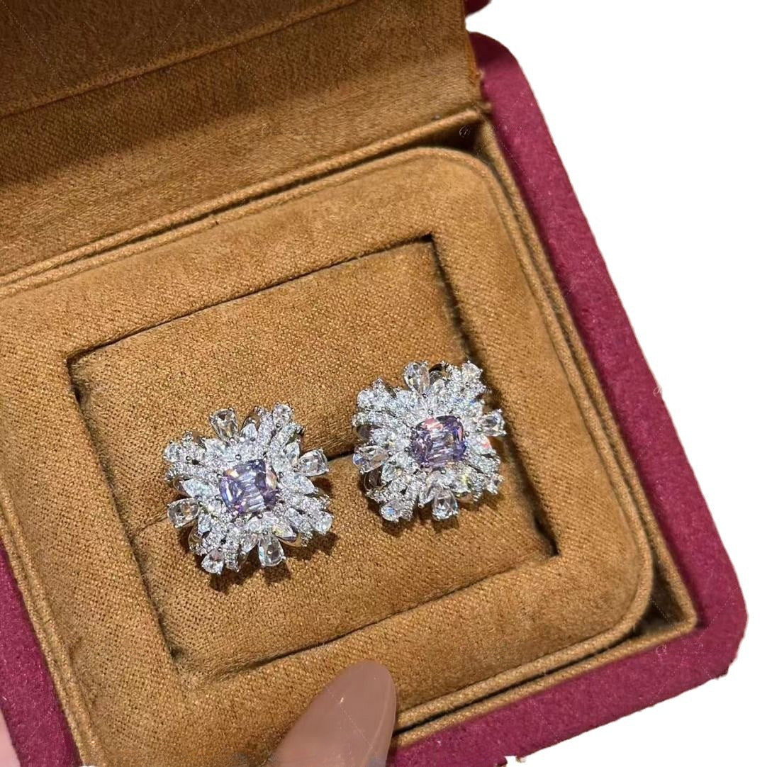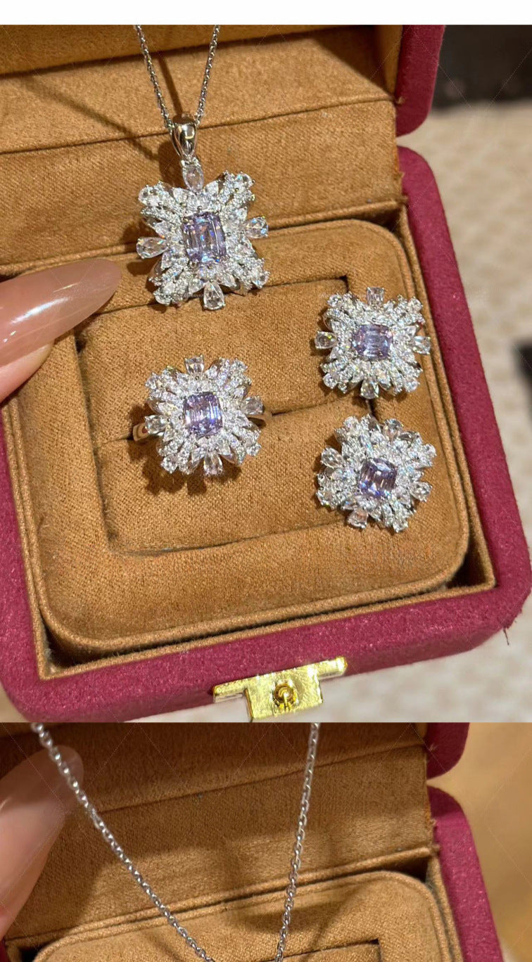 Women's Lavender High Carbon Rhinestone Ear Ice Necklaces