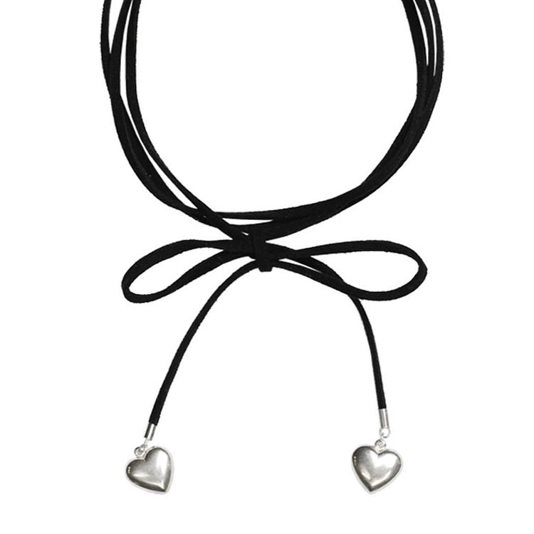 Women's Long Black Bow Ribbon Love Niche Sweater Necklaces