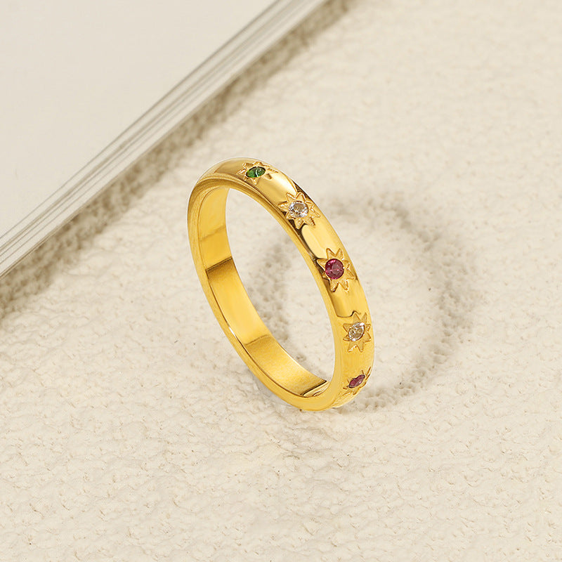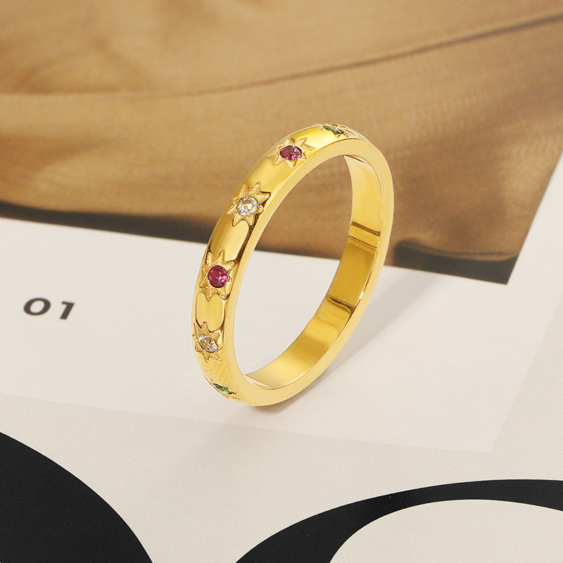 Women's Luxury Minority Colorful Crystals Gold-plated Cold Style Fashion Rings