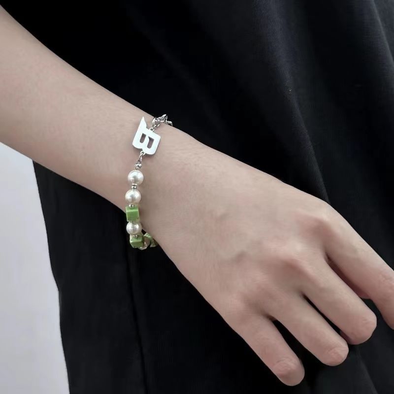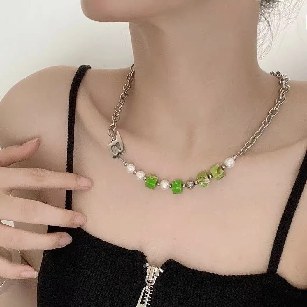 Women's & Men's Fresh Summer Green Beaded Stitching Letter For Design Necklaces