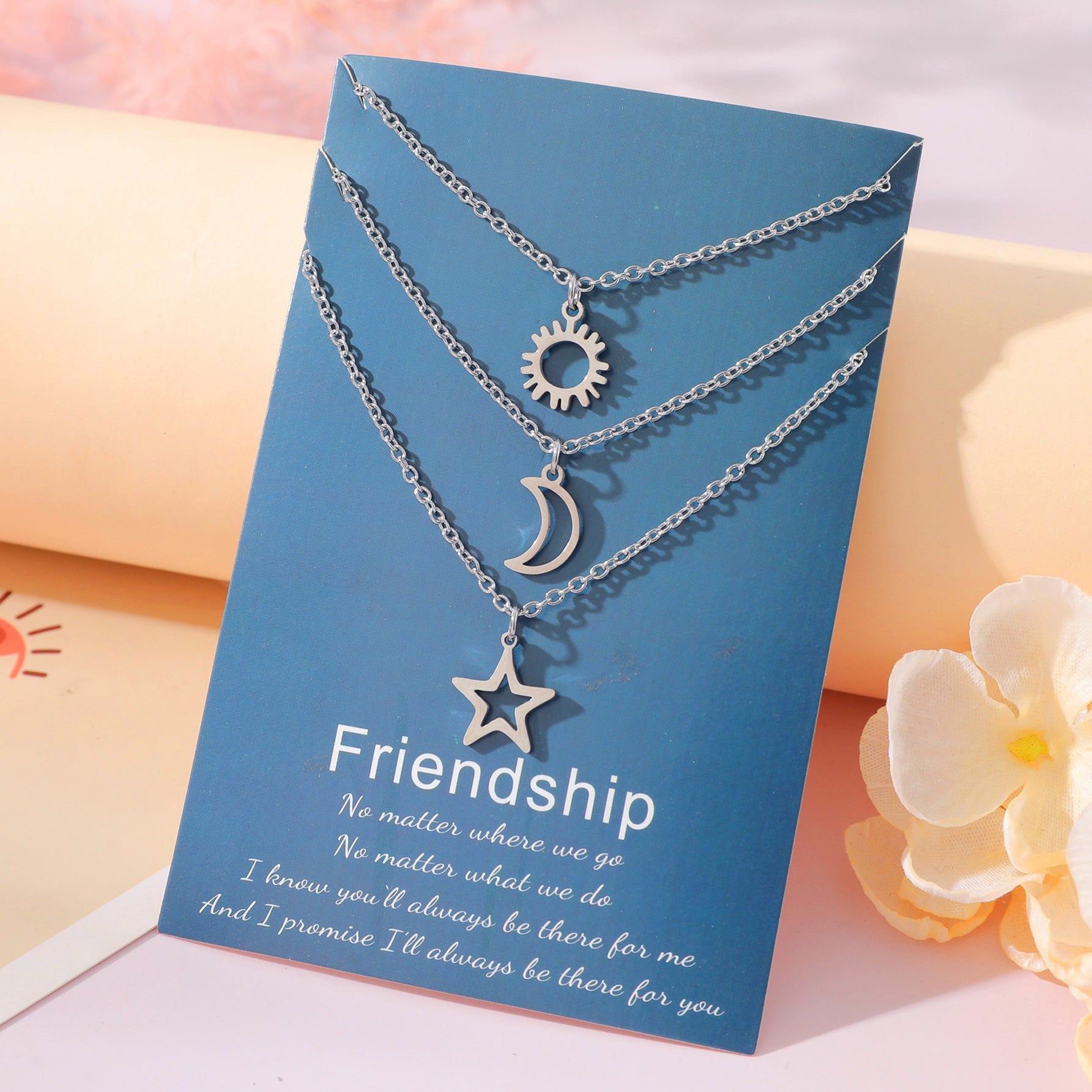 Women's & Men's Friendship Suit Creative Stainless Steel Sun Moon Star Necklaces