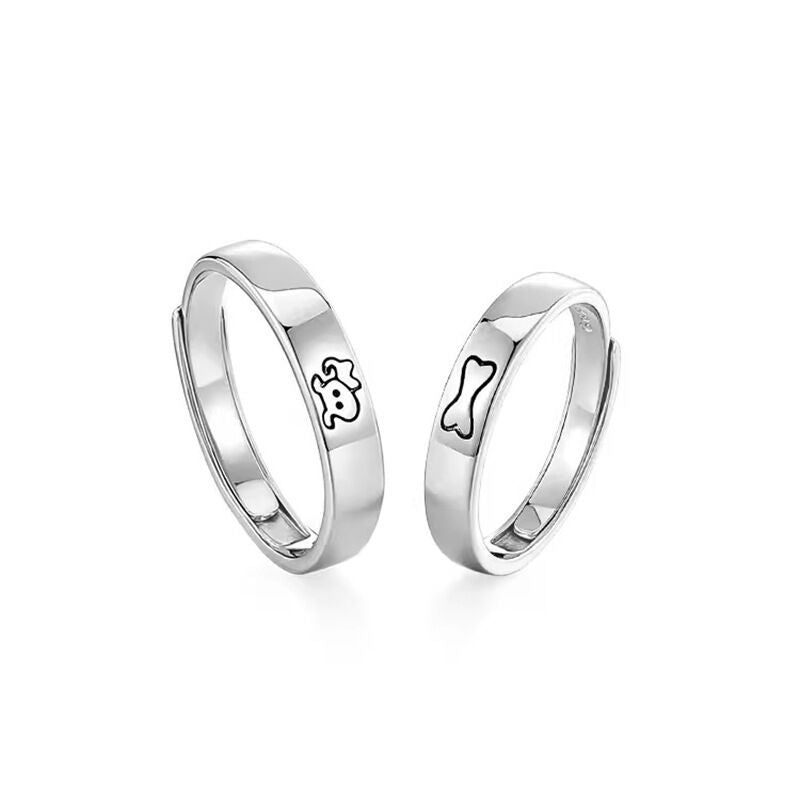 Women's & Men's Love Bone Cute Couple One Pair Niche Rings
