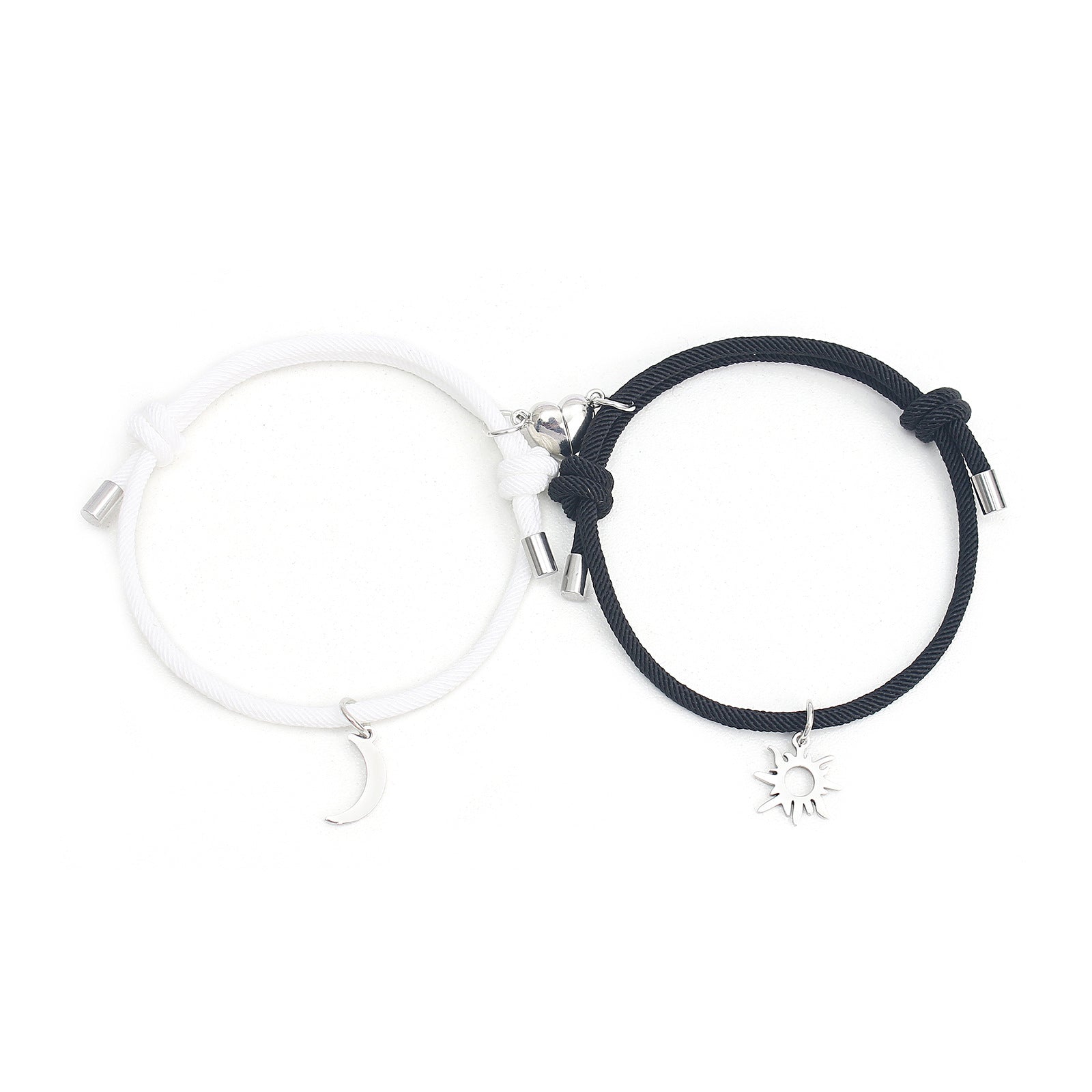 Women's & Men's Love Magnet Stainless Steel Sun Moon Lovers Bracelets