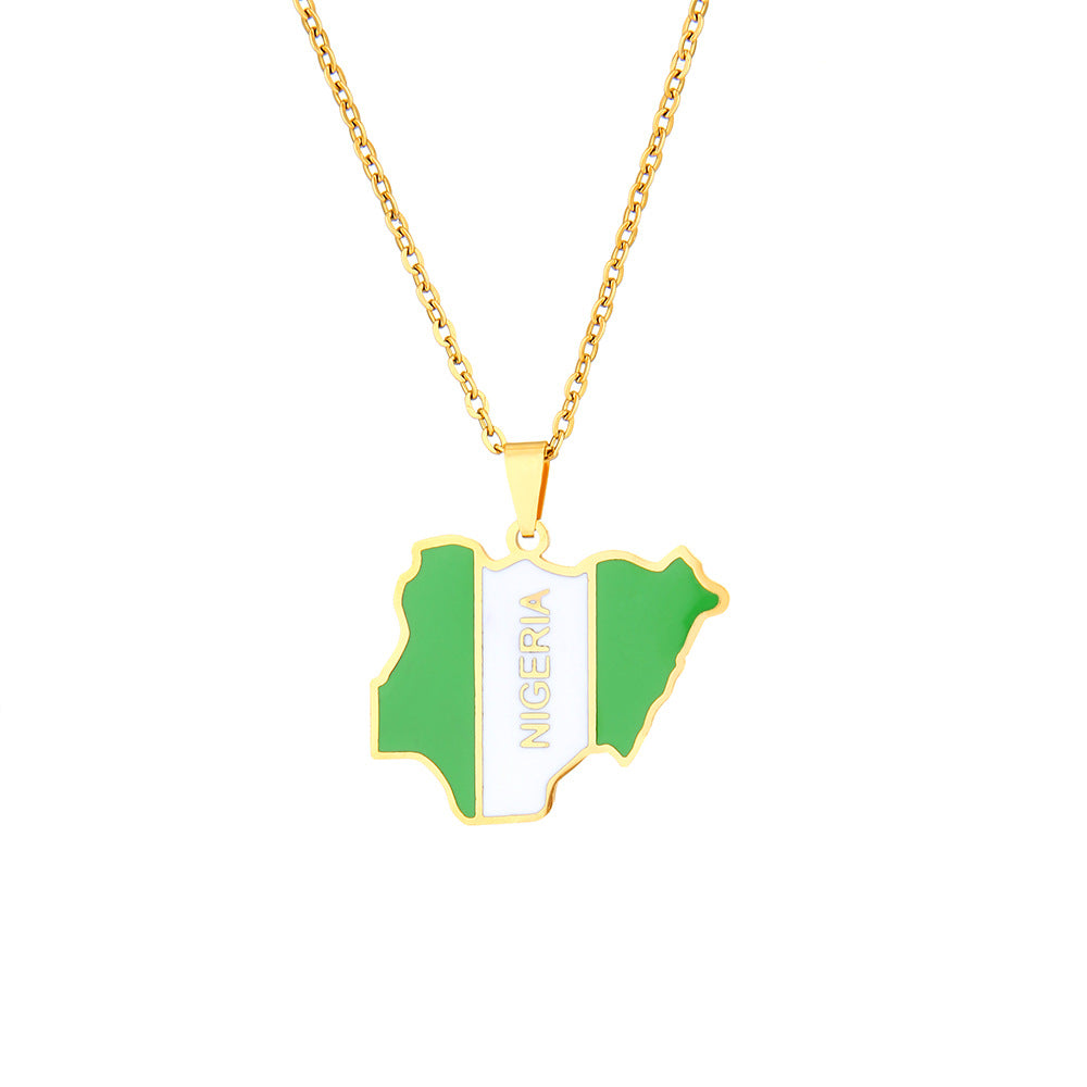 Women's & Men's Map Stainless Steel Titanium Drop Oil Necklaces