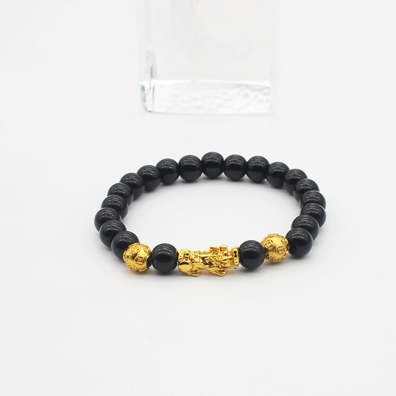 Women's & Men's Placer Gold Double Imitation Hard Pure Obsidian Bracelets