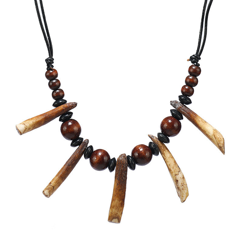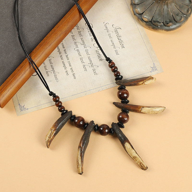 Women's & Men's Tooth Retro Personalized Natural Wooden Bead Necklaces