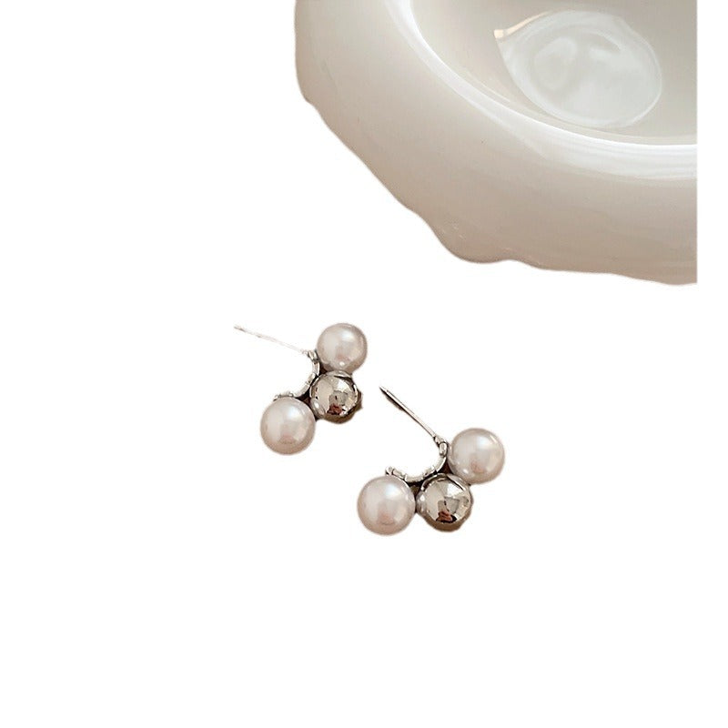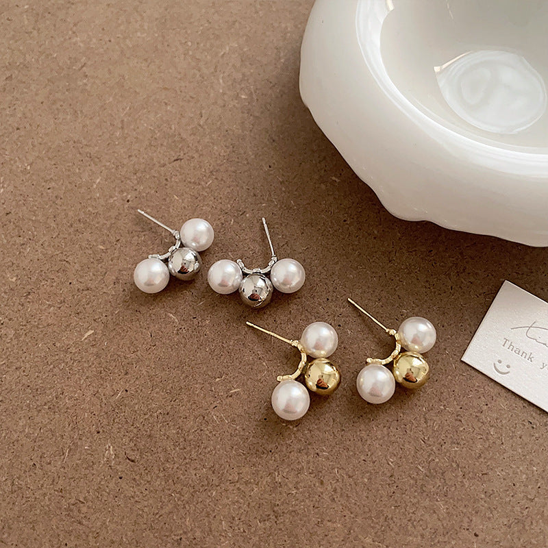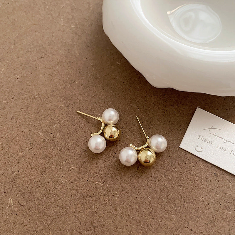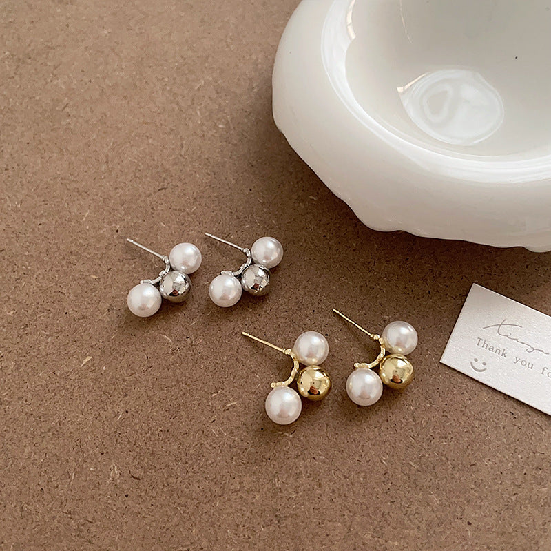 Women's Pearl Stitching Metal Beads Curved For Niche Design Earrings
