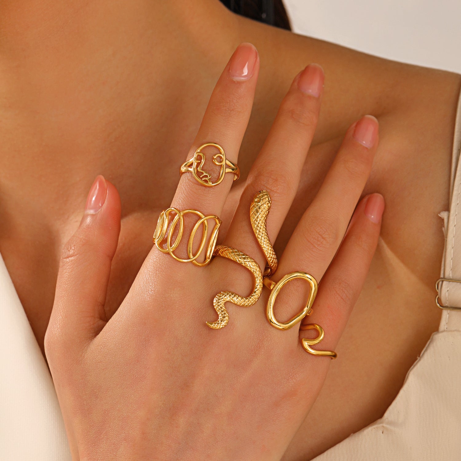 Women's Popular Stainless Steel Geometric Ellipse French Retro Rings