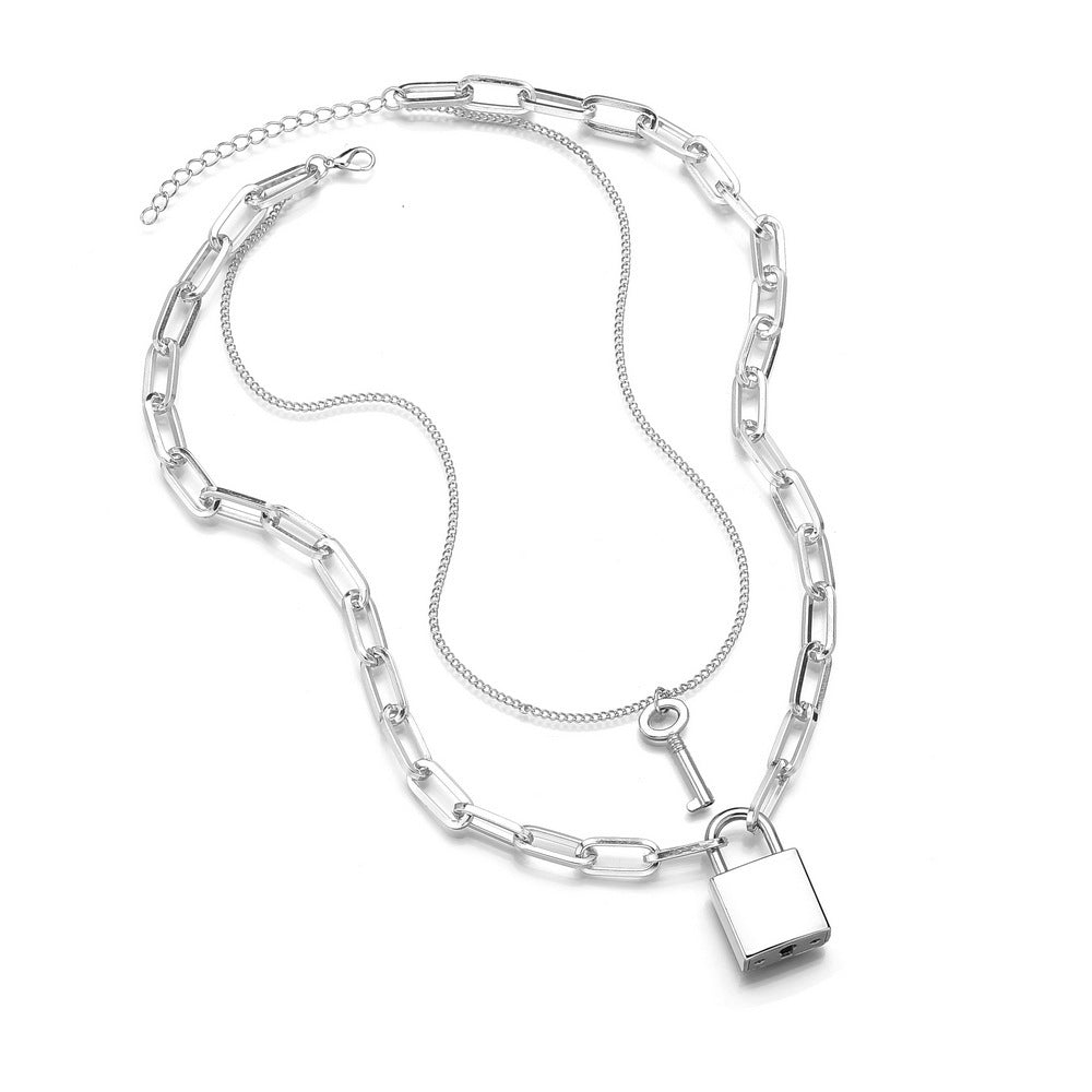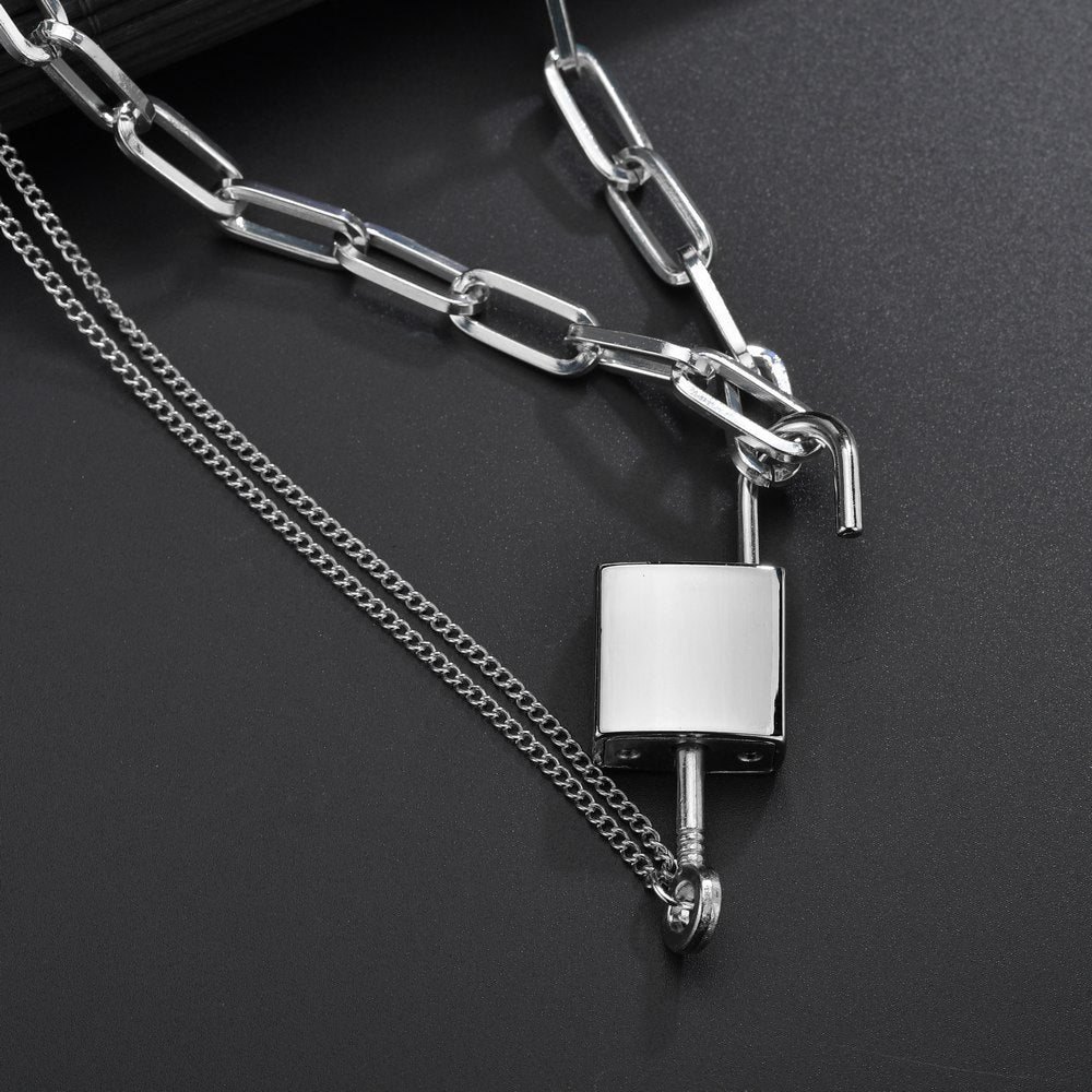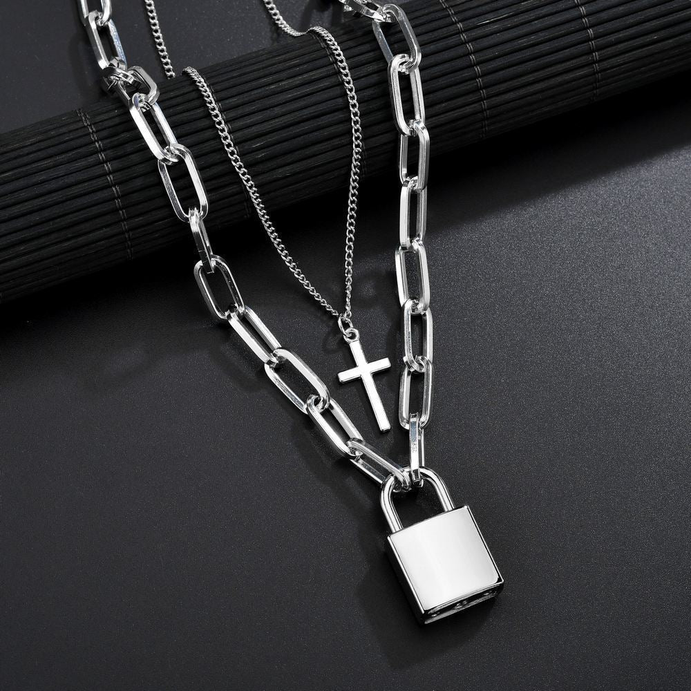Women's Punk Hip Hop Cross Lock Double Layer Necklaces