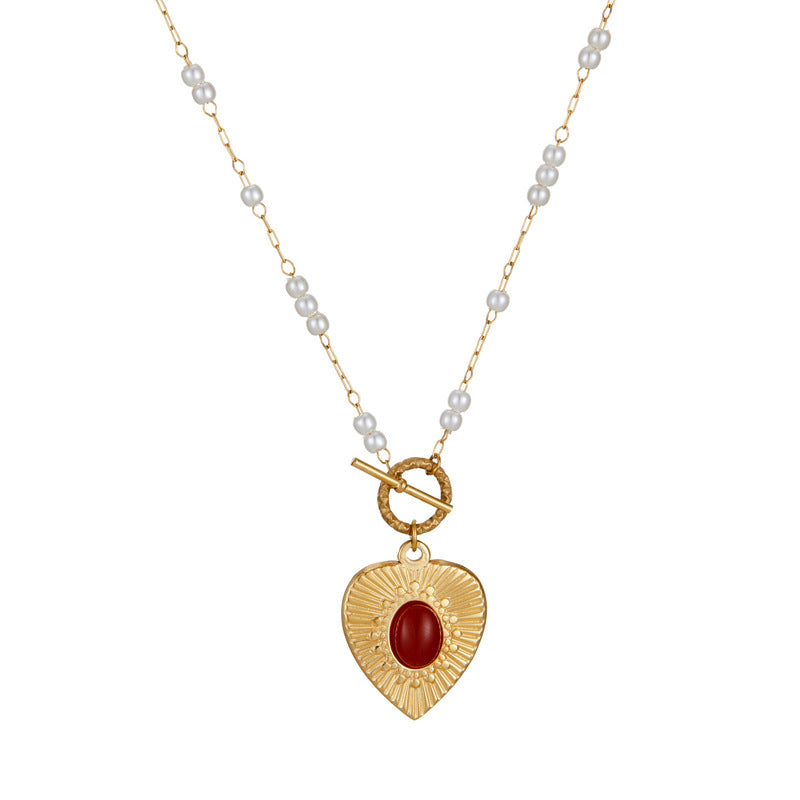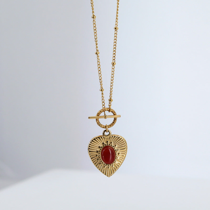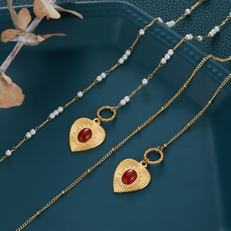 Women's Radiation Pattern Lovely Geometric Peach Heart Red Agate Necklaces